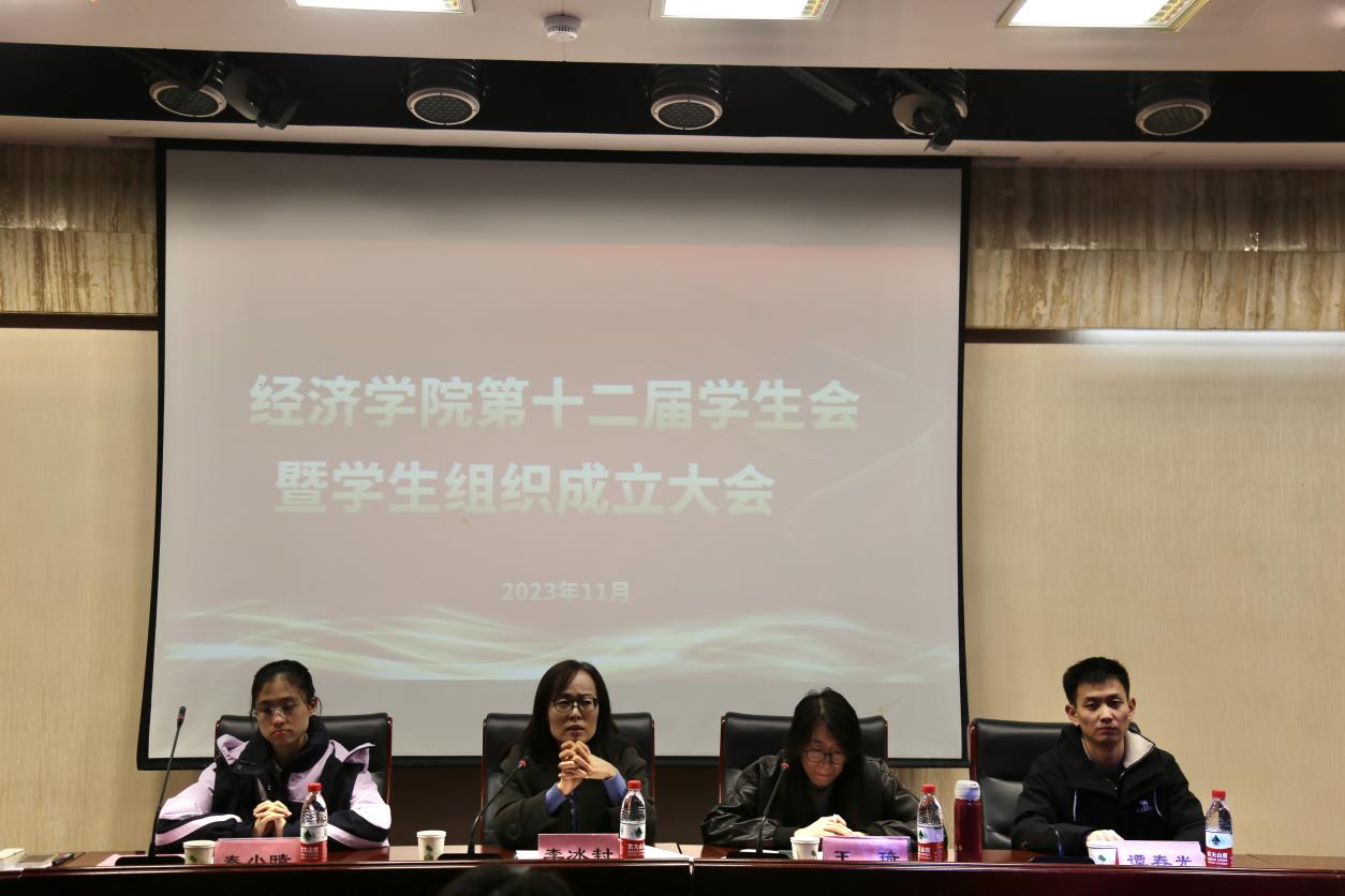 (通讯员:芮曦 公天琦 武坤泽 孙婷潇)为推动我院学生工作有序开展,进一步优化学生会、学生组织结构体系,发挥学生干部模范带头作用,11月20日中午,经济学院第十二届学生会暨学生组织成立大会于圣井校区敏行楼5-106报告厅举行。经济学院党委副书记李冰封,党委专职组织员王琦,辅导员秦小晴、谭春光出席会议。第十一届学生会主席矫宇航及第十二届学生会全体成员参加会议。会议由王琦主持。