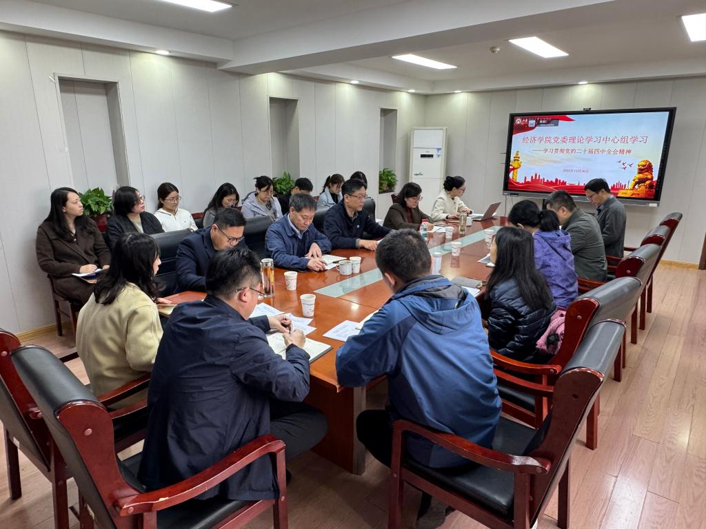 10月30日上午,山东财经大学经济学院党委理论学习中心组在舜耕校区办公楼会议室召开集体学习(扩大)会,专题学习习近平总书记在党的二十届四中全会上发表的重要讲话精神,部署贯彻落实工作。学院党委书记姜伟主持学习,学院党委理论学习中心组成员、院长助理、各党支部书记、辅导员代表参加学习。校党委宣传部副部长张艳霞、《山东财经大学报》社编辑泥霓列席会议。