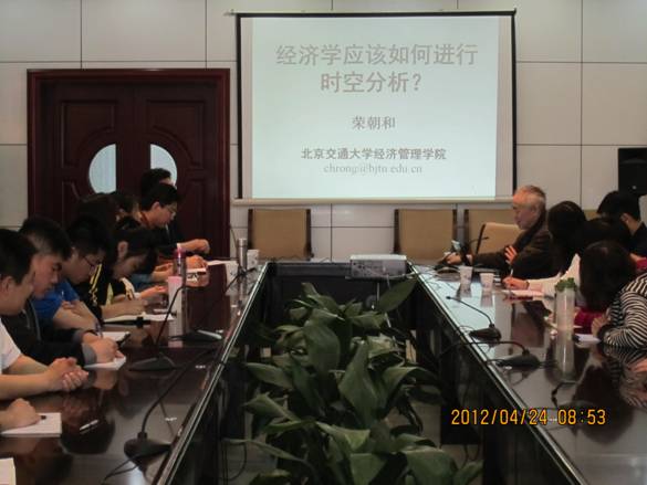 4月24日,庆祝山东财经大学成立揭牌系列学术活动在舜耕校区办公楼一楼会议室举行。北京交通大学教授、博士生导师荣朝和为经济学院师生作了题为“经济学应该如何进行时空分析”的精彩学术报告。
