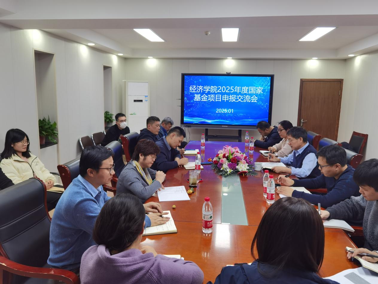 根据我校2025年度国家基金项目申报工作推进会的部署要求,我院高度重视国家基金项目的申报工作,并于2025年1月7日下午在1208会议室召开了经济学院2025年度国家基金项目申报交流会议,经济学院院长殷克东教授,各系(部)主任、副主任,各非实体科研机构负责人参加会议,会议由经济学院副院长张明志主持。