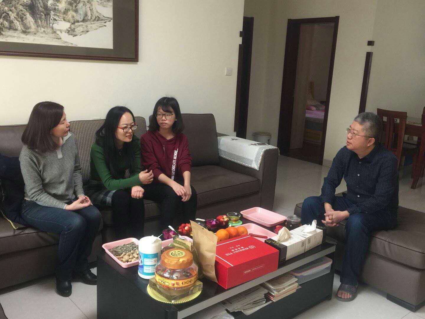 1月30日上午,经济学院党委书记吴红文、副书记任海伦,辅导员周新秀来到位于济南市市中区二环南路2014级学生李晓雅家中。李晓雅是我院优秀学生的代表,中共党员,曾获省级优秀毕业生、校长奖学金,多次获一等奖学金、校优秀学生干部、优秀学生、优秀团员等,曾任团支书。作为专业排名第一名和推免考试第一名的获得者,她收到了暨南大学硕士研究生推荐免试入学资格,却因母亲身体不好拒绝这一机会选择成为考研大军中的一员。领导老师们就李晓雅的生活、学习和考研情况与家长及学生进行了亲切交流,鼓励并支持学生继续深造,以扩展知识视野,提高学术水平,增强就业竞争力,并介绍了目前国内高校研究生的奖励办法、额度和科研激励政策。
