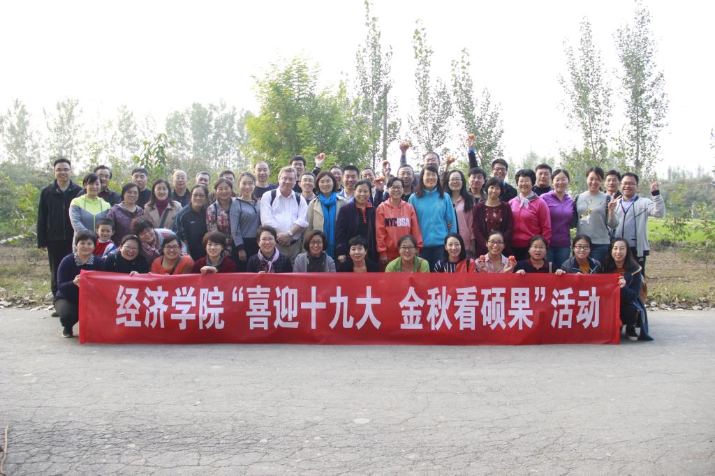 在中国共产党第十九次代表大会召开之际,为丰富教职工业余生活,进一步增强学院凝聚力,10月19日下午,经济学院工会组织教职工赴济阳县垛石镇开展了“喜迎十九大,金秋看硕果”活动。学院全体班子成员和部分教职工共五十余人参加了此次活动。