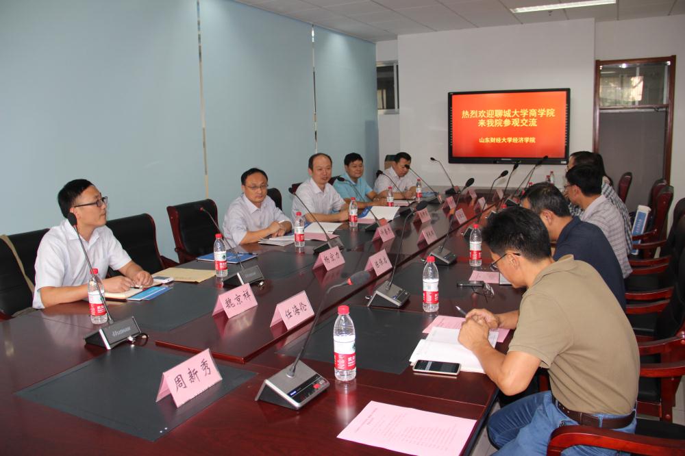 9月21日下午,聊城大学商学院院长马中东,副书记许奎杰,副院长公维才一行6人到访我院,就教学、科研、研究生、学生工作、国际化办学等方面进行交流座谈。座谈会在经济学教学基础实验中心举行,我院全体班子成员、对外交流合作部主任杨丽、团委书记周新秀参加了会议。