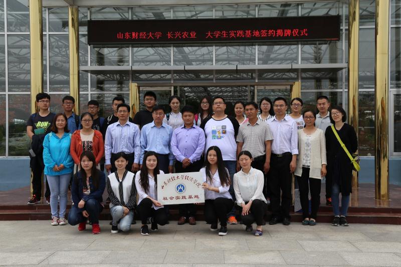 5月7日,经济学院与山东长兴农业发展有限公司共建山东财经大学社会实践基地揭牌仪式于新泰市楼德镇长兴农业产业园顺利举行。经济学院院长董长瑞、党委副书记任海伦、山东长兴农业发展有限公司执行董事长苏小龙、总经理张彦伟、经理高山、山东长兴农业发展有限公司员工代表及经济学院教师、学生代表参加。