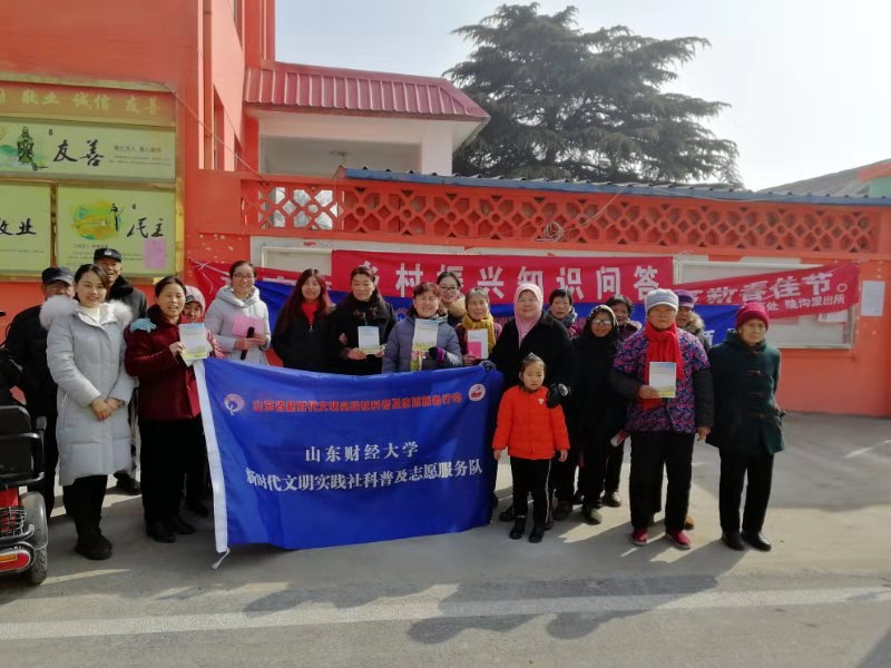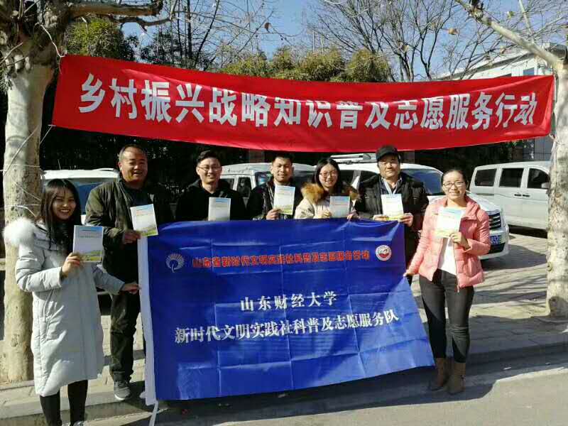 根据山东省社会科学界联合会《关于开展新时代文明实践社科普及百名专家志愿服务农村行动的通知》(鲁社科联字[2019] 1号),为认真贯彻《山东省新时代文明实践中心建设试点工作方案》(鲁办发[2018] 48号),加快实施我省新时代文明实践社科普及志愿服务行动,推动乡村文化振兴,在科研处领导下,依托山东财经大学乡村振兴研究院,我校成立了由董长瑞、崔宝敏、朱世英等专兼职研究员和学生组成的山东财经大学新时代文明实践社科普及志愿服务队。
