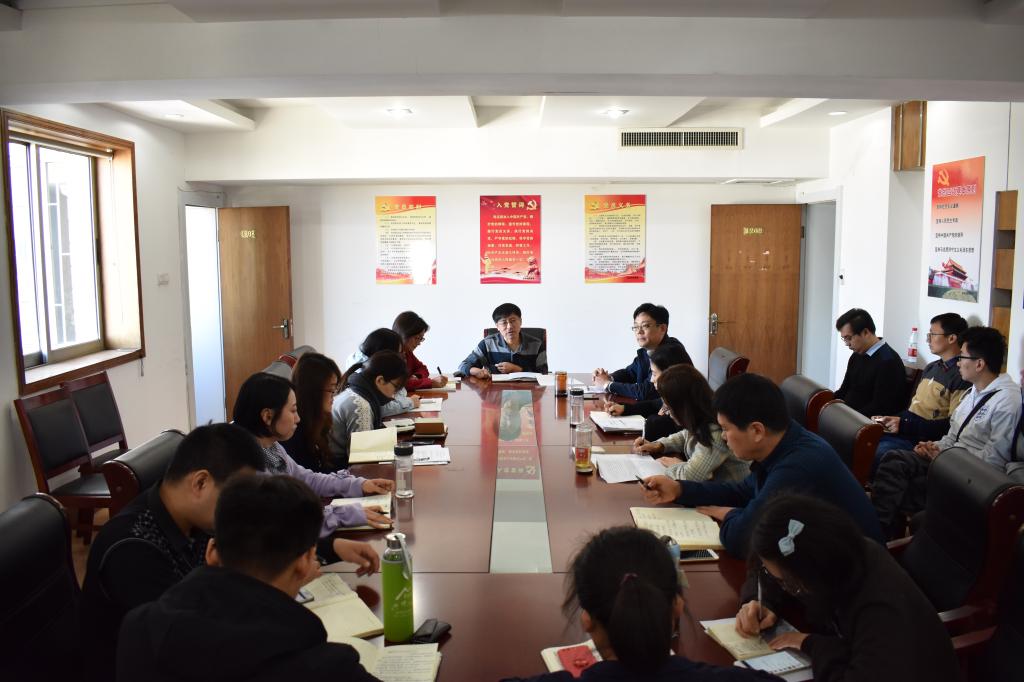 2018年10月18日上午9:30,经济学院党委理论学习中心组在舜耕校区办公楼1208学习贯彻全国教育大会精神。参加学习的还有我院全体行政人员、全体辅导员、2018年新入职的7名教师,会议由党委书记姜伟主持。