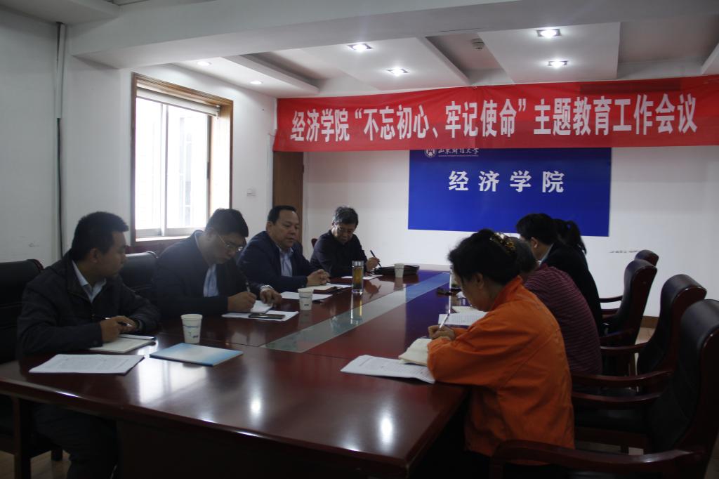 会上姜伟就我院“不忘初心、牢记使命”主题教育活动进展情况进行了详细的汇报。经济学院根据学校党委要求制定了自己的方案,并有条不紊地进行;学院并不单纯为了理论学习而学习,而是把学科建设、第五轮评估有机地结合起来;领导班子带头主动学习理论,营造良好的学习氛围。姜伟还汇报了学院的特色活动“六重”活动。