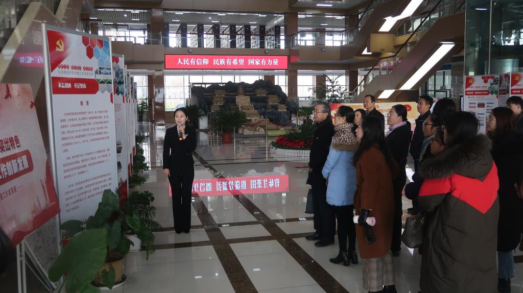 调研队一行在山东城市建设职业学院经济管理系党总支书记董文涛、办公室行政科长张伟的陪同下,参观了学院党校环境建设、党校文化,观摩了智慧党建平台建设和使用情况,参观了学院党委履行主责、完善机制、夯实基础、创新载体、打造品牌的党建工作成果展和“不忘初心、牢记使命”主题教育工作展。在图书馆馆长董桂花陪同下,听取了图书馆样板党支部“创新党建工作,服务立德树人”为主题的工作情况介绍,参观了古建筑构件收藏馆、初心书苑、中华优秀传统文化特藏室、校史馆及山东省广厦文化艺术研究中心等育人场所,在创艺工坊参观了建筑环境设计VR创艺工作室、雕刻创艺实训基地和学院学生的创意作品。