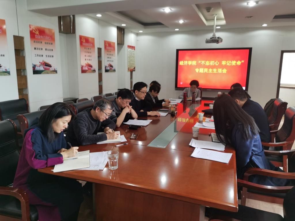 (通讯员:王琦)根据学校“不忘初心、牢记使命”主题教育领导小组关于召开专题民主生活会的部署和要求,经请示学校第二巡回指导组同意, 经济学院于12月5日下午,在舜耕校区办公楼1208会议室召开了“不忘初心、牢记使命”专题民主生活会。学校第二巡回指导组成员、校纪委、监察处办公室主任高磊,纪委、监察处正科级干部王丽娜到会指导。院党委领导班子全体成员参加了会议,会议由党委书记姜伟主持。