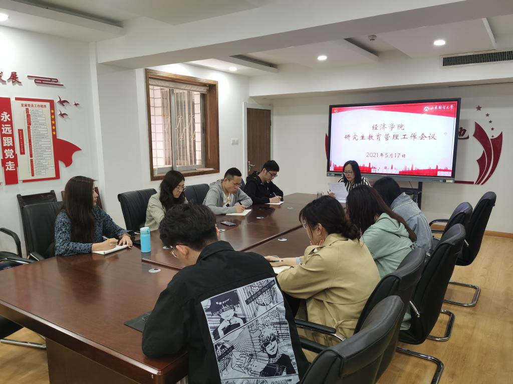 (李冰封)5月18日下午,经济学院研究生教育管理工作会议在舜耕办公楼1408会议室召开。研究生各班班长、团支书,三个研究生党支部支委会成员参加会议。会议由经济学院党委副书记李冰封主持。