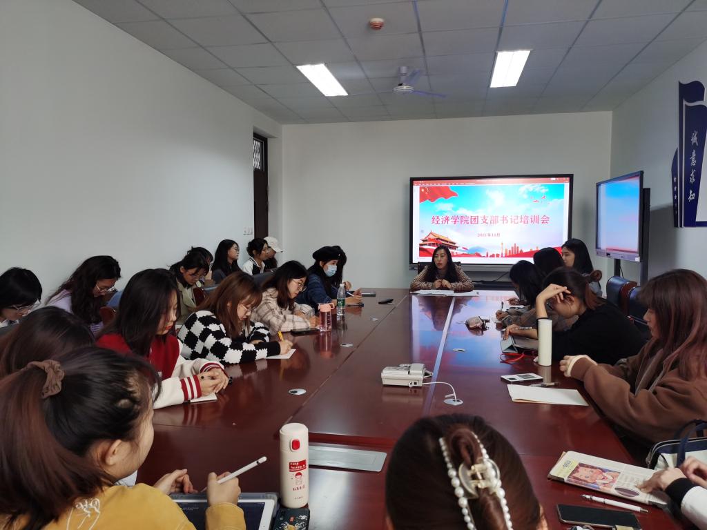 (通讯员:付雯 韩云昕)为深入贯彻落实习近平总书记“7.2”重要讲话精神和团的十八大精神,进一步夯实共青团基层组织建设,切实提高团支书的工作能力和业务素养,适应新形势下共青团工作的新要求,10月25日中午,经济学院在圣井校区七号教学楼会议室召开团支部书记培训会。会议由学院团委书记付雯主持,经济学院2019级、2020级、2021级全体团支部书记参加会议。