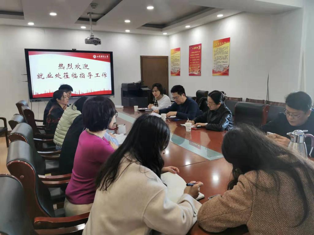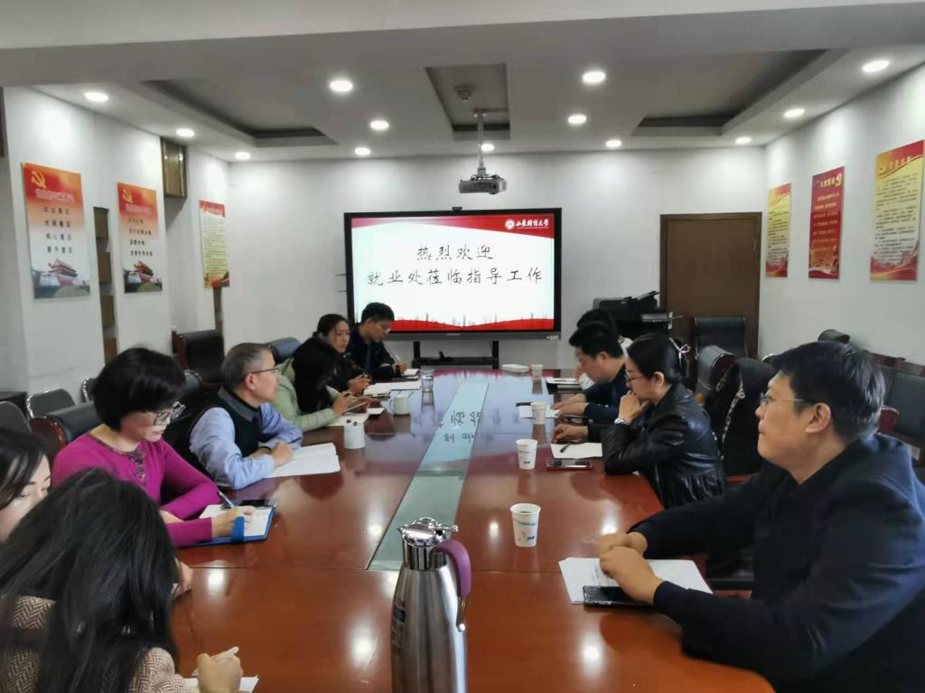 11月11日上午9点30分,学校就业指导处处长杨哲,副处长杜丽娜,科长高雪芹、何峰到我院调研就业工作。经济学院党委副书记高峰、李冰封,副院长彭留英、齐杨,团委书记付雯,党委专职组织员王琦,就业办主任朱海林参加了座谈会,调研由高峰主持。