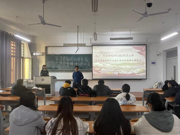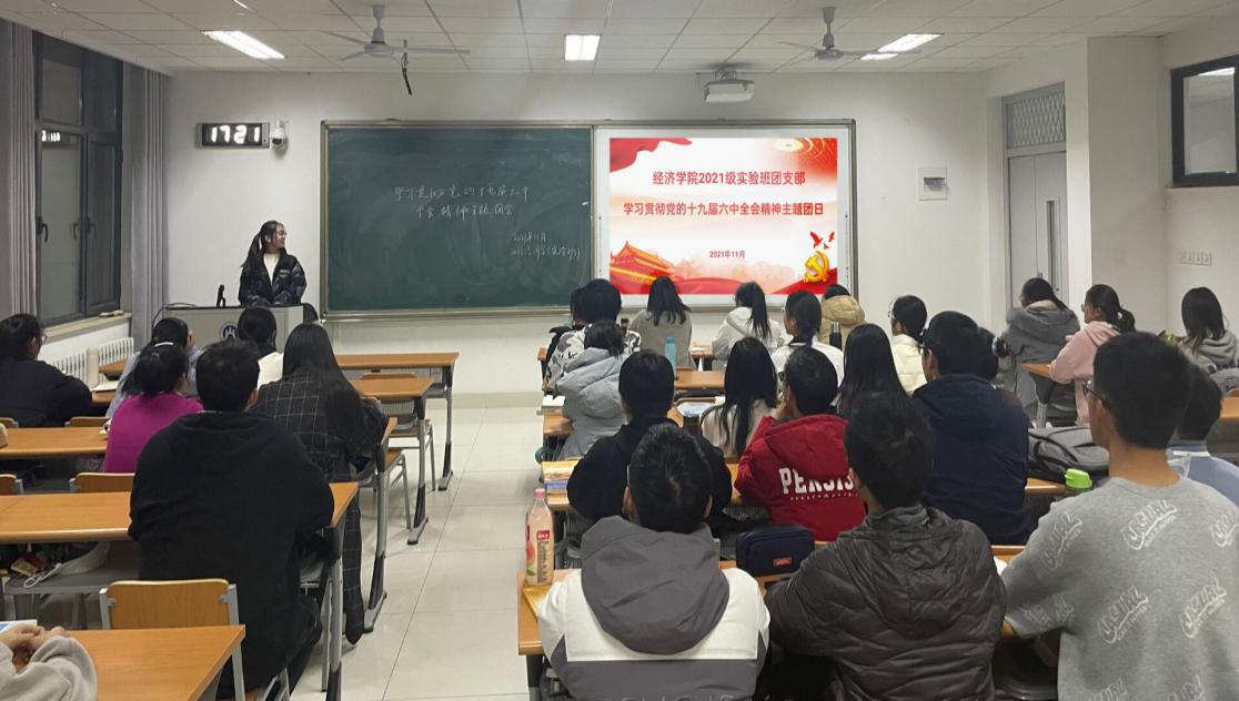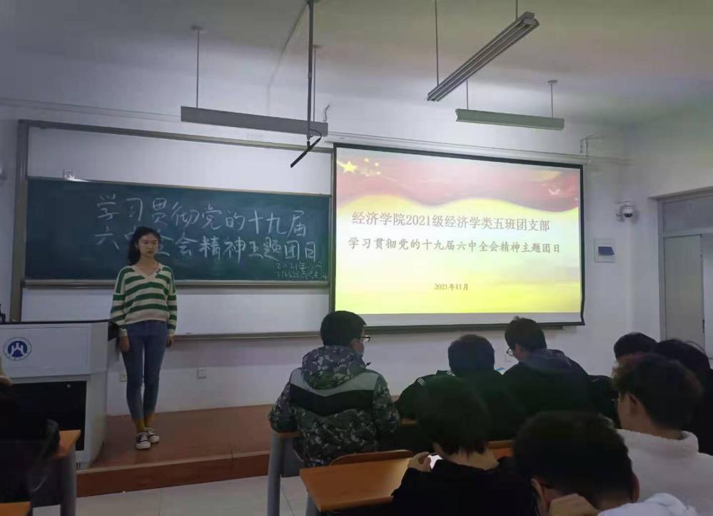 经济学院团委高度重视,广泛发动,积极宣传,对此次主题团日活动作周密部署和科学安排,制定详尽的活动方案。各个团支部围绕学习贯彻党的十九届六中全会精神,开展了形式多样,内容丰富的主题团日。团支书带领团员青年观看党的第十九届六中全会相关视频资料,让同学们深刻领会、准确把握党的百年奋斗的初心使命,深刻认识中国共产党为什么能、马克思主义为什么行、中国特色社会主义为什么好的历史逻辑、理论逻辑、实践逻辑,以小组为单位在主持人的带领下学习《中国共产党第十九届中央委员会第六次全体会议公报》、《中共中央关于党的百年奋斗重大成就和历史经验的决议》的主要内容并进行提问,同学们展开交流互动,积极分享自己的学习心得与感受。