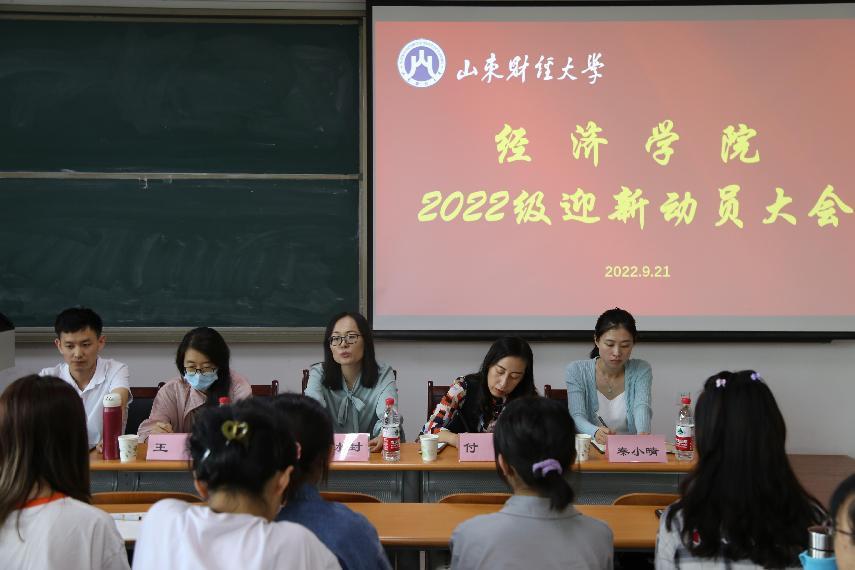 (通讯员:曾荣 刘寿勇)9月21日中午,经济学院于圣井校区7号教学楼召开经济学院2022级迎新动员大会。经济学院党委副书记李冰封,团委书记付雯,党委专职组织员王琦,辅导员秦小晴、谭春光出席会议。会议由付雯主持,学院全体迎新工作人员和2022级学生辅导员到场参加。