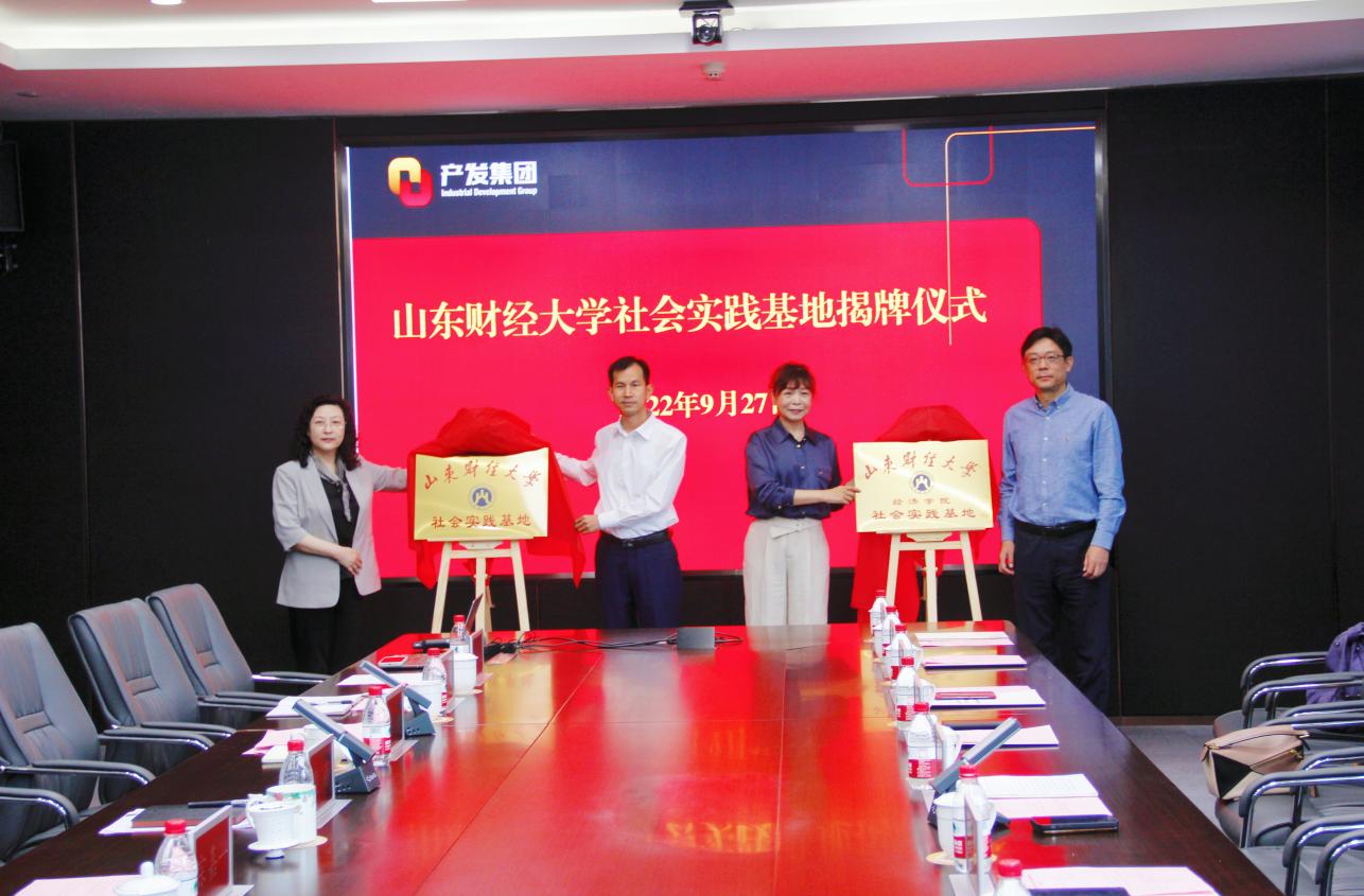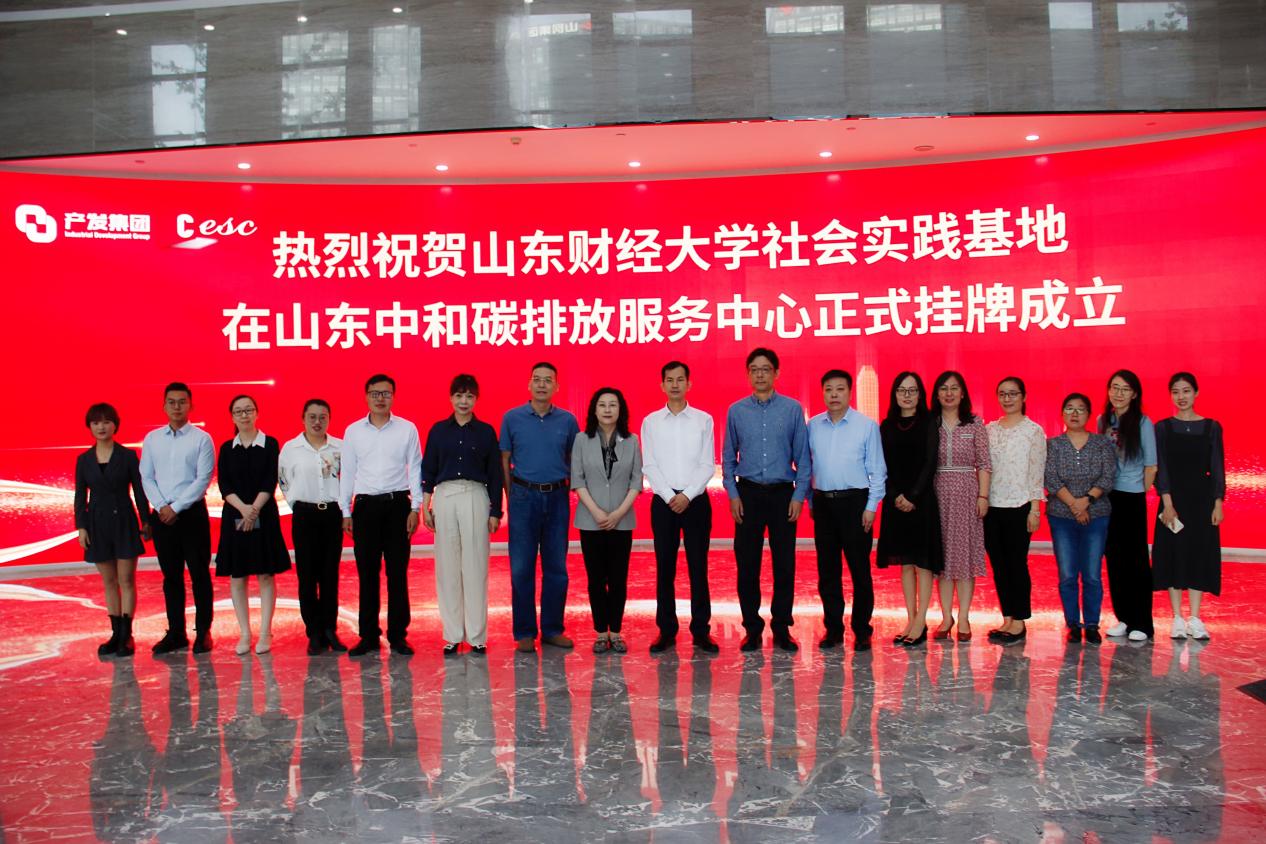 谢申祥一行首先来到产发集团总部,参观了公司双碳平台建设,听取了关于前沿碳交易系统的介绍。山东中和碳排放服务中心有限公司成立于2017年,是由济南产业发展投资集团投资成立,面向全国、服务全省的国有专业碳排放、节能减排项目服务平台。随后,与济南产业发展投资集团进行了座谈交流。产发集团党委书记兼董事长黄蓓致辞并介绍了集团积极推动校企合作和促进大学生就业的情况,谢申祥介绍了山东财经大学和经济学院近年来在学科专业、教学科研、社会服务、人才培养等方面取得的长足进步,了解企业用人需求,创新人才培养。双方围绕如何加强校企合作,对接企业需求,输送双碳领域人才展开了深入交流,并就建立长期合作关系达成一致意见。座谈会后,双方共同为山东财经大学实践基地、山东财经大学经济学院实践基地举行了揭牌仪式。
