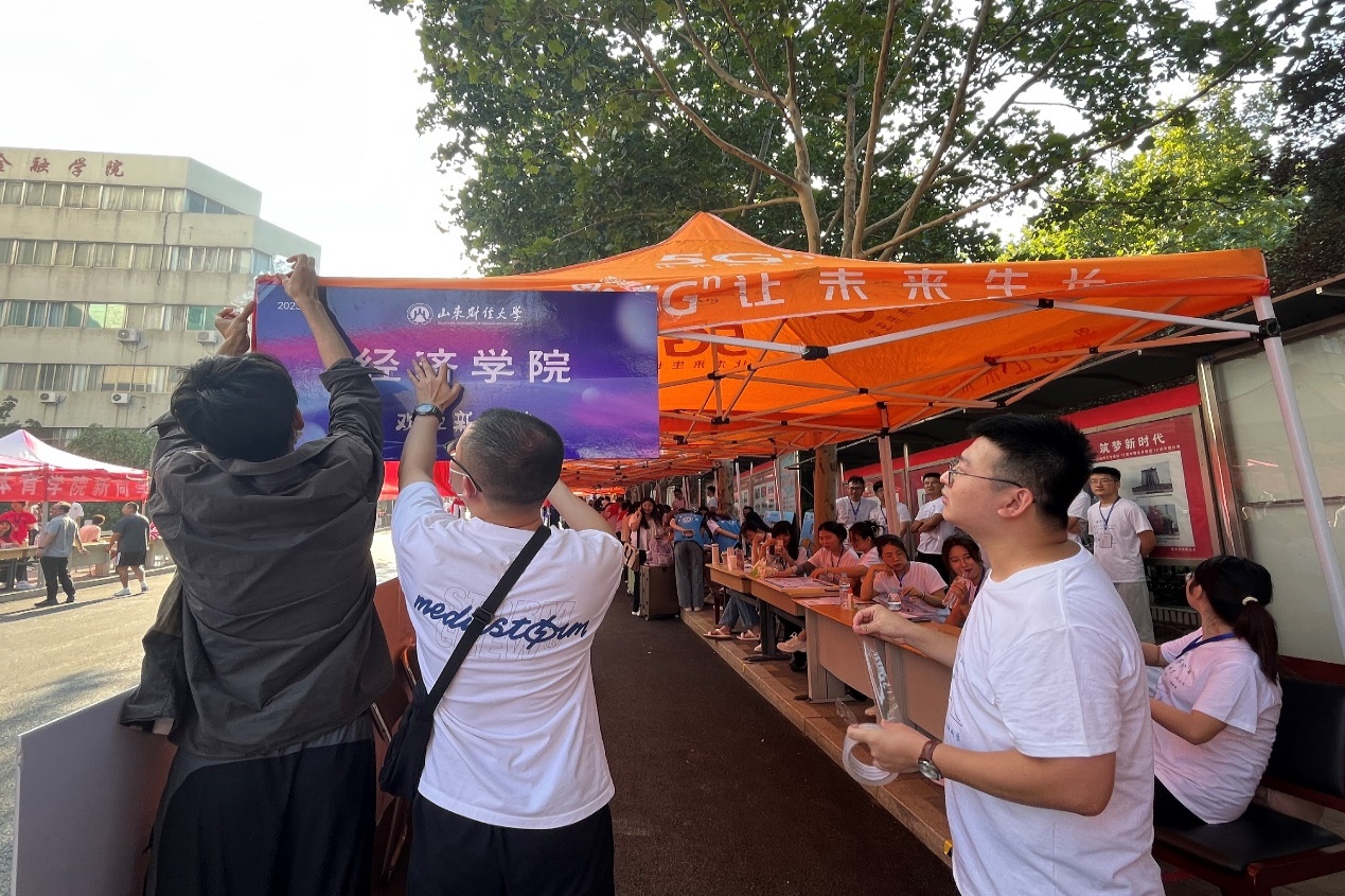 我院党政领导高度重视此次迎新工作,组织研究生会工作人员扎实准备好各项迎新工作,结合学院实际,完善迎新工作细节,落实物品准备、人员分工、报到流程等。老师同学通力合作,搭帐篷、拉横幅、搬桌椅,协助新生顺利完成报到,让大家感受到经院大家庭的负责与温暖。