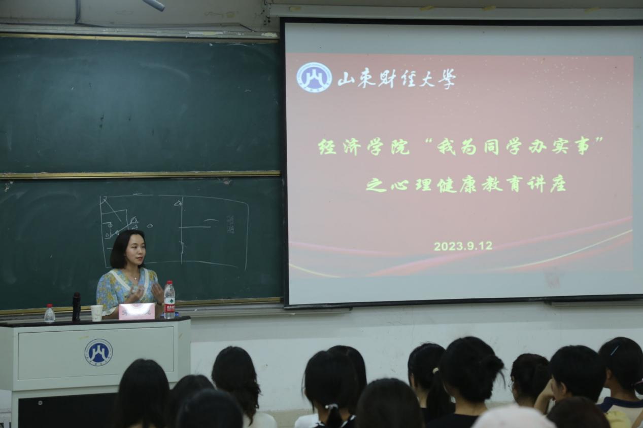 (通讯员:公天琦 孙婷潇)为深入贯彻落实《教育部关于加强学生心理健康管理工作的通知》要求,普及正确的心理健康知识,帮助新生保持良好的心理状态。9月12日晚,经济学院在圣井校区5号教学楼举办“我为同学办实事”之心理健康专题讲座,讲座特邀山东财经大学大学生心理健康与研究中心专职教师、国家二级心理咨询师宋晓婉主讲,经济学院2023级全体新生参加。讲座由经济学院教师刘传明主持。