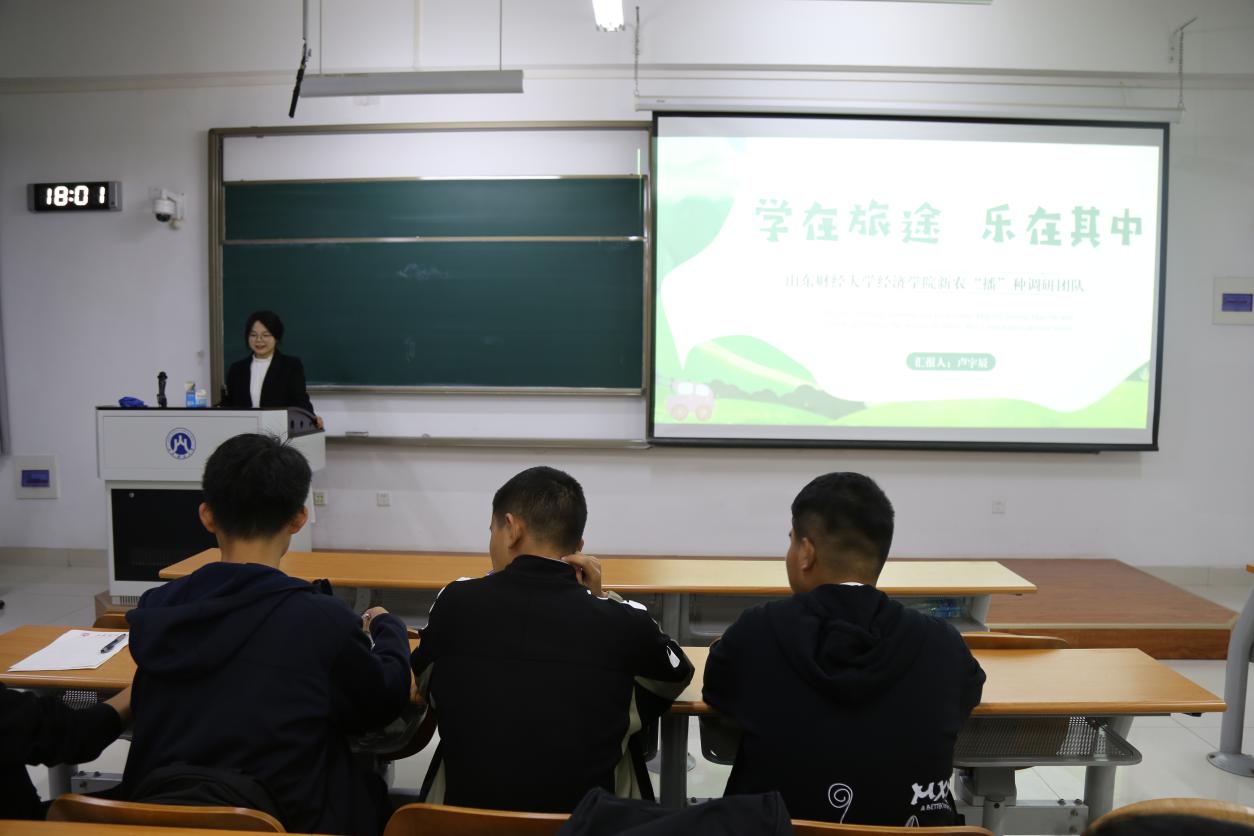“新”农播种调研项目负责人、经济学院三千计划优秀个人卢宇辰以自己的调研经历为依托,从项目选题、组建团队、实践规划三个方面与23级同学们进行经验分享。