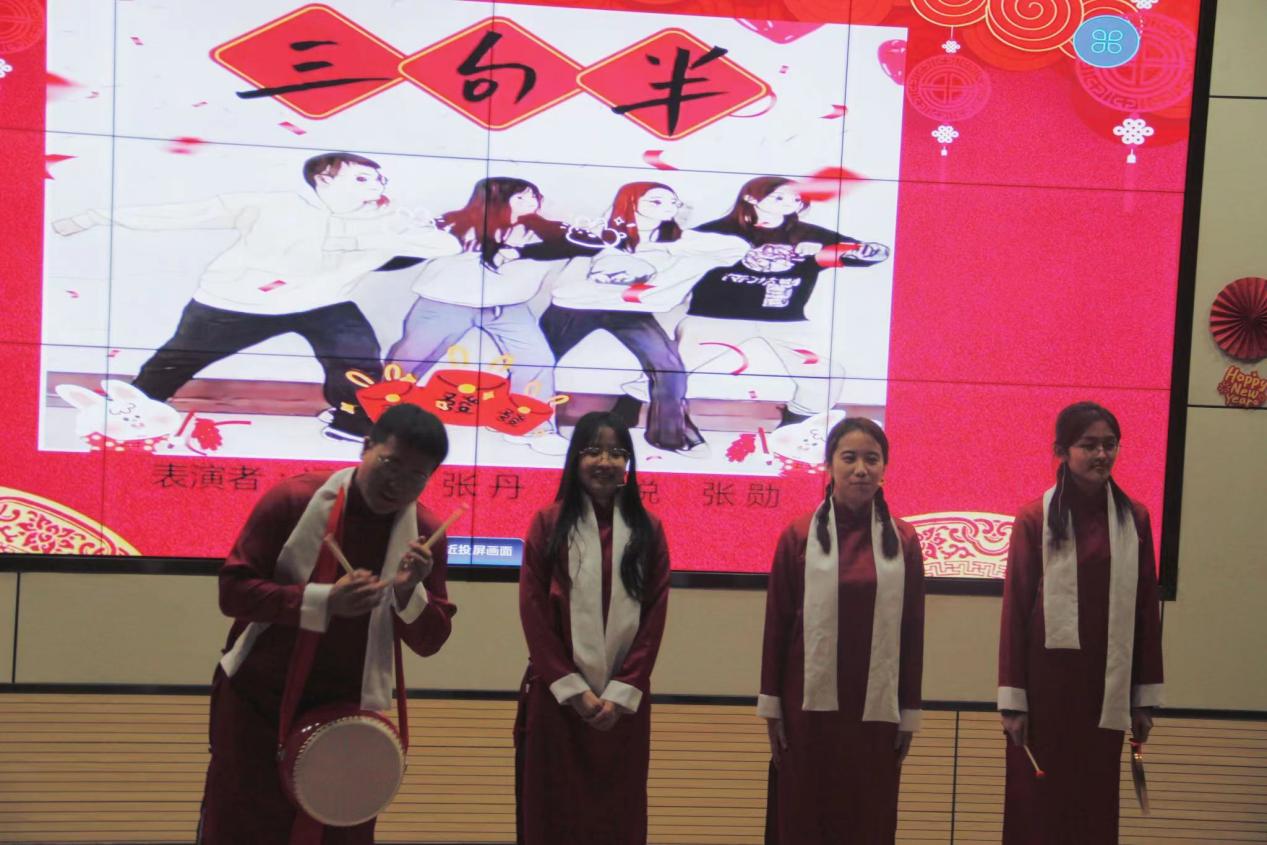 曲艺表演《三句半》以一种群众喜闻乐见的曲艺表演形式,一种中国传统的说唱艺术,一种以说为主的韵文体曲种,向观众们展现着研究生的日常生活状态,观众们喜闻乐见。