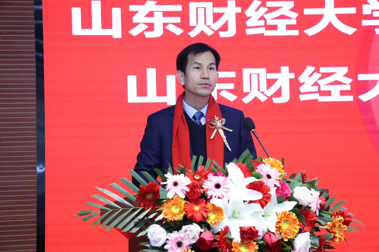 张新代表学校全体师生员工向出席大会的各位校友表示诚挚的欢迎,向多年来一直关心支持学校建设发展的广大校友表示衷心的感谢,向山东财经大学校友会经济学院分会成立表示热烈的祝贺。他表示,经济学院多年来培养的大批优秀校友为学校赢得了较高的社会声誉,校友们的奋斗和取得的优异成绩,极大地提高了学校的社会影响力和美誉度。经济学院校友分会成立,一方面要传承学校和学院的优良传统和教育理念,助力经济学院的全方位建设和学校的教育事业。以经济人、财大人的精神和情怀,投入到国家各行各业的建设浪潮之中,为学校和学院增光添彩;另一方面,希望广大校友为学院、学校发展献计献策,积极参与学院、学校的校友工作,通过互动、互助、互爱的校友活动,让广大校友在这里感受到家的温暖,让这里成为经济学院校友永远的精神家园。学校也将更加坚定地支持校友会工作,也希望经济学院更加积极、主动地联系海内外校友,不断厚植广大校友的爱校荣校情怀,让校友会成为学院最有影响力的名片,成为推动学院建设发展的平台和不竭动力源泉。