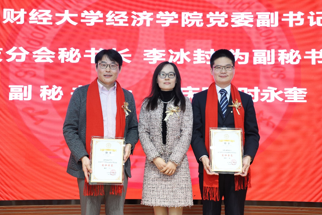 大会选举副校长、经济学院院长谢申祥担任山东财经大学校友会经济学院分会会长,经济学院党委书记姜伟担任常务副会长,经济学院原院长董长瑞担任荣誉会长,1999级校友贾可礼、2000级校友苏庆铎、2002级校友王鹏、2004级校友徐盼盼、2009级校友朱洪敏、2013级校友张大尧、2013级校友李承铭担任副会长,经济学院党委副书记李冰封担任秘书长,2004级校友周庆贵、时永奎担任副秘书长。