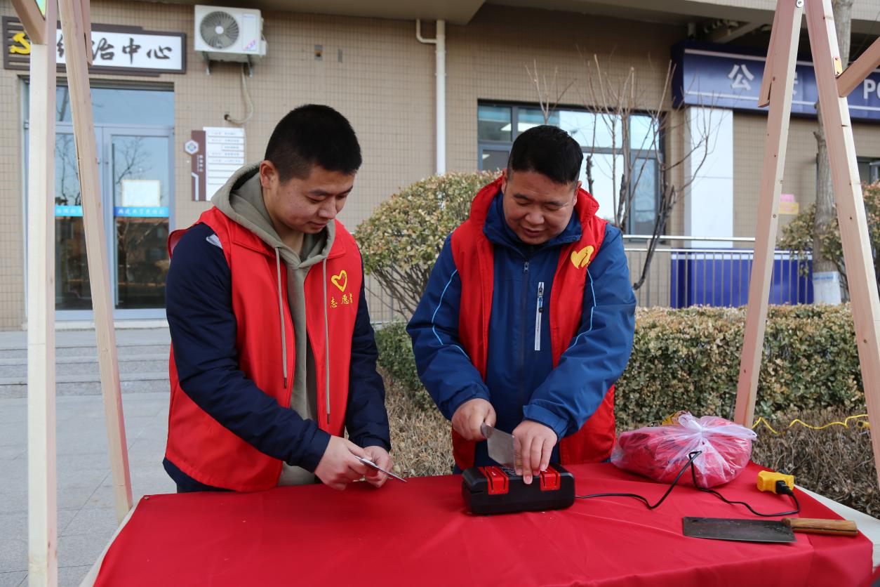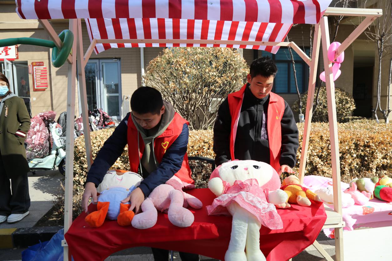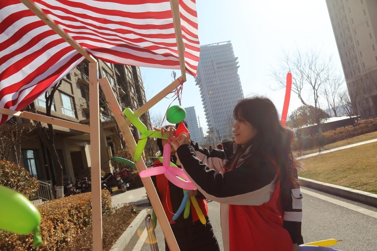 春风送暖,爱满三月。志愿者们早早地来到圣井碧桂园社区党群服务中心,帮助社区工作人员布置公益市集摊位,拉横幅、吹气球、摆放桌椅、铺设装饰、搬抬工具。我院志愿者在社区工作人员的指导下,完成磨菜刀、裁缝铺、中医问诊、爱心义剪、清洗地垫、家电维修、公益美甲、金融服务、鲜奶酸奶售卖、糖葫芦售卖、旧电动车回收换购、测量血压血糖等十余个摊位的布置工作。