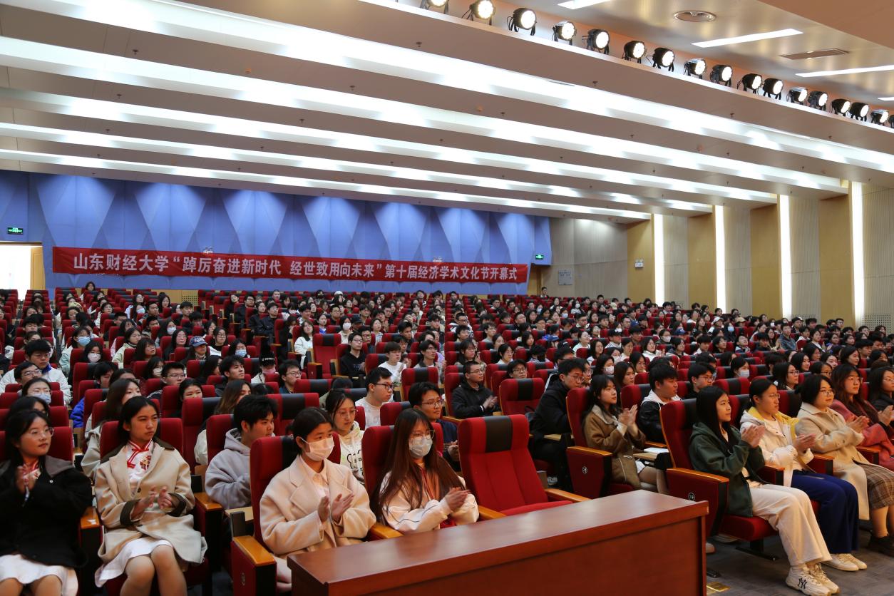 (通讯员:芮曦 武坤泽)3月20日,由校学生工作部(处)、校团委和经济学院主办,经济学院团委、学生会承办的山东财经大学“踔厉奋进新时代,经世致用向未来”第十届经济学术文化节开幕式于圣井校区文化活动中心报告厅举行。经济学院党委书记姜伟,圣井校区管理办公室党委书记高峰,校学生工作处副处长刘思锋,校团委副书记邢夏子,经济学院党委副书记李冰封、陈静,副院长崔宝敏、张明志出席开幕式。开幕式由陈静主持。
