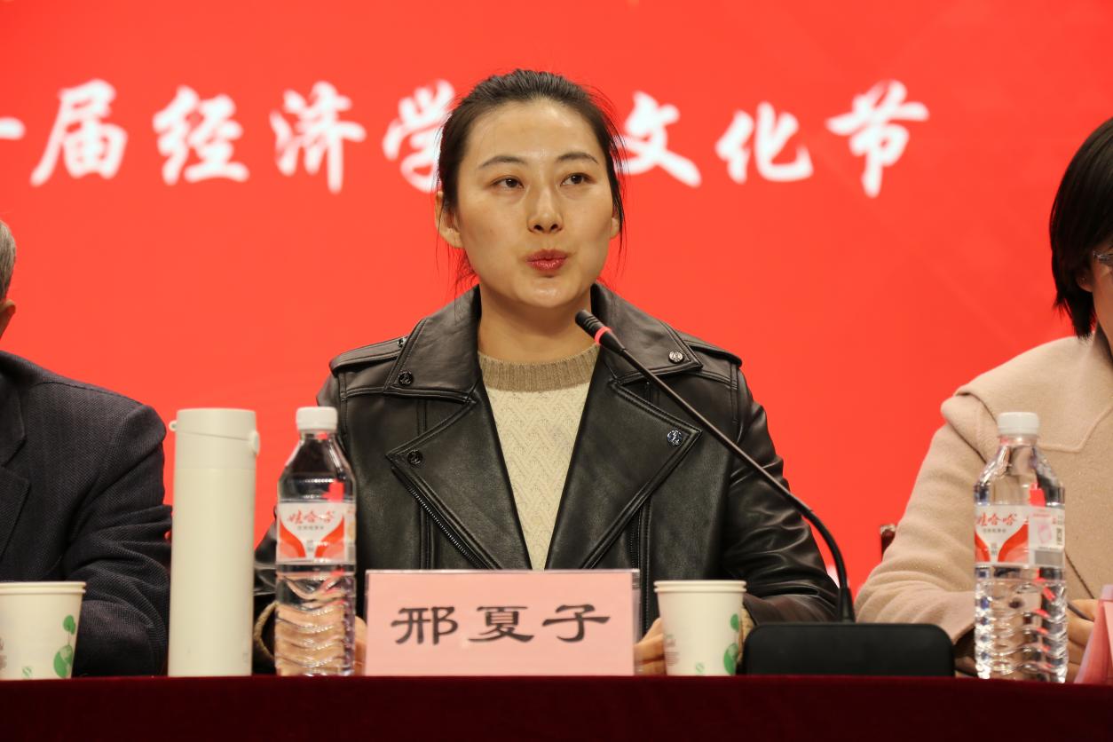 邢夏子向为本届经济学术文化节付出努力的领导老师和同学们表示感谢,指出经济学院在各类校园文化活动中表现出色,形成了以“菁彩”青春网格员为代表的质量佳、影响好的文化品牌,为广大学子提供了经风雨、强筋骨、增才干的“加油站”。经济学术文化节是校园文化建设“一院一品”的重要组成部分。她希望同学们通过文化节系列活动进一步加深专业理解,在实践中检验专业知识的掌握程度,进一步提升综合素质,明晰未来规划,见微知著,与时俱进,勇立潮头担当时代重任,勇毅奋斗书写青春荣光。