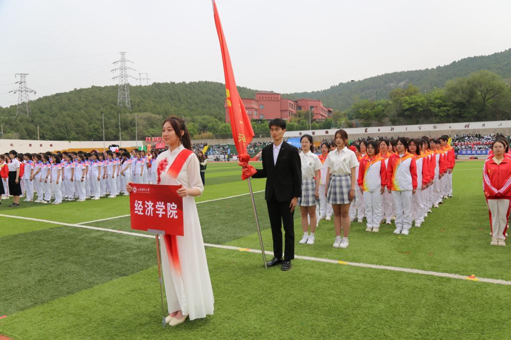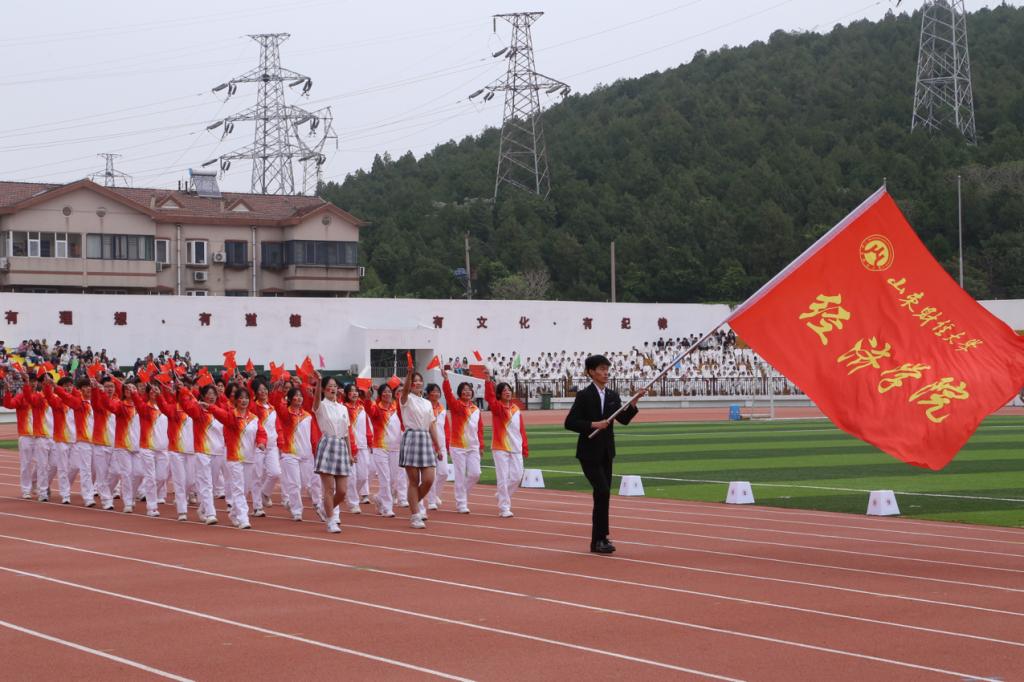 开幕式上,经济学院方阵队伍口号嘹亮、精神抖擞,“破浪乘风,经济巅峰,经院既战,搏至无憾”,他们挥舞着五星红旗,迈着坚定有力的步伐入场,向全校展示出经院学子昂扬向上的风采。