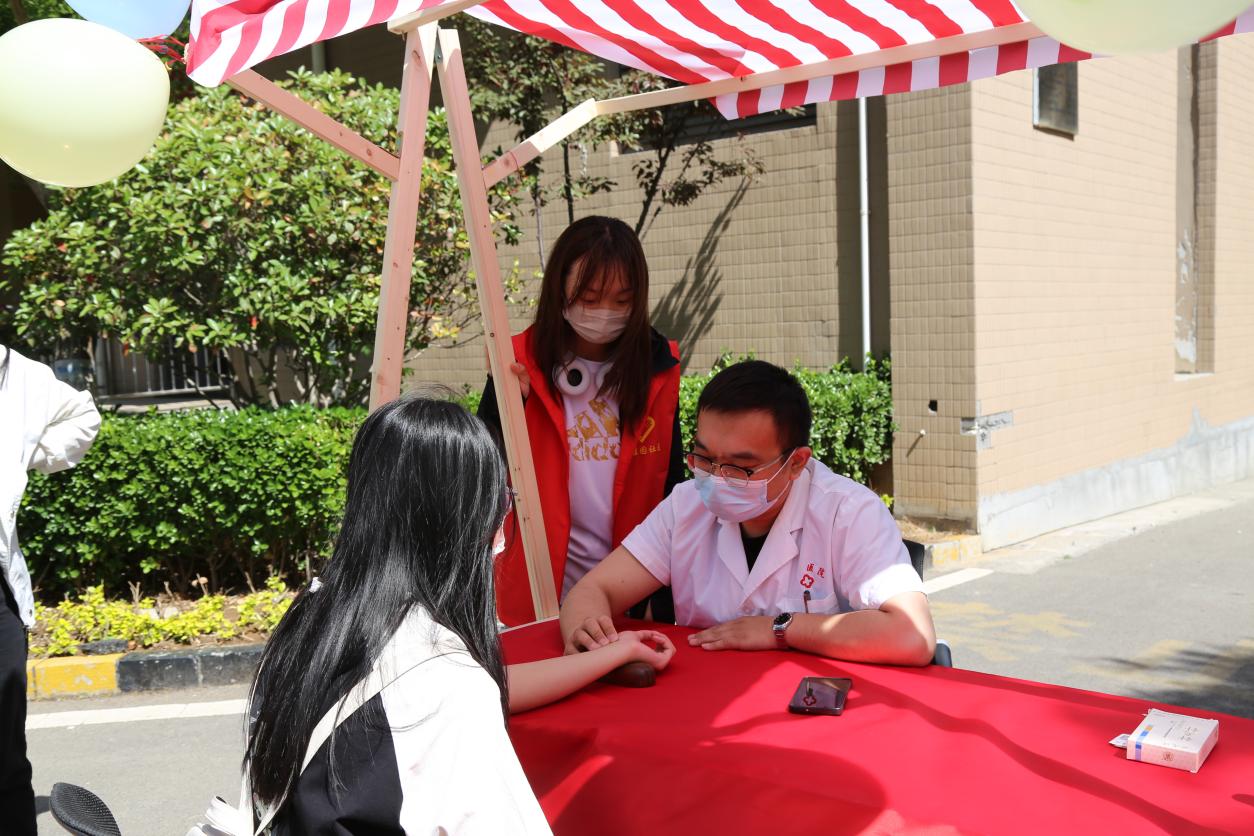 上午九点半,活动正式开始,我院志愿者热心服务,协助做好公益服务区、跳蚤市场区和小食小吃区的秩序维持、摊位引导、资料发放等工作。公益服务区,志愿者们协助义诊工作的开展,量血压、测血型,向社区居民耐心讲解相关问题,充分了解居民的需求并帮助解决实际问题;跳蚤市场区,志愿者们摆放好闲置物品、写好标语,鼓励小朋友们互换物品,促进交流;小食小吃区,志愿者协助摊主制作并售卖鸡蛋卷等美食,将美味传递,促进邻里之间和睦相处。