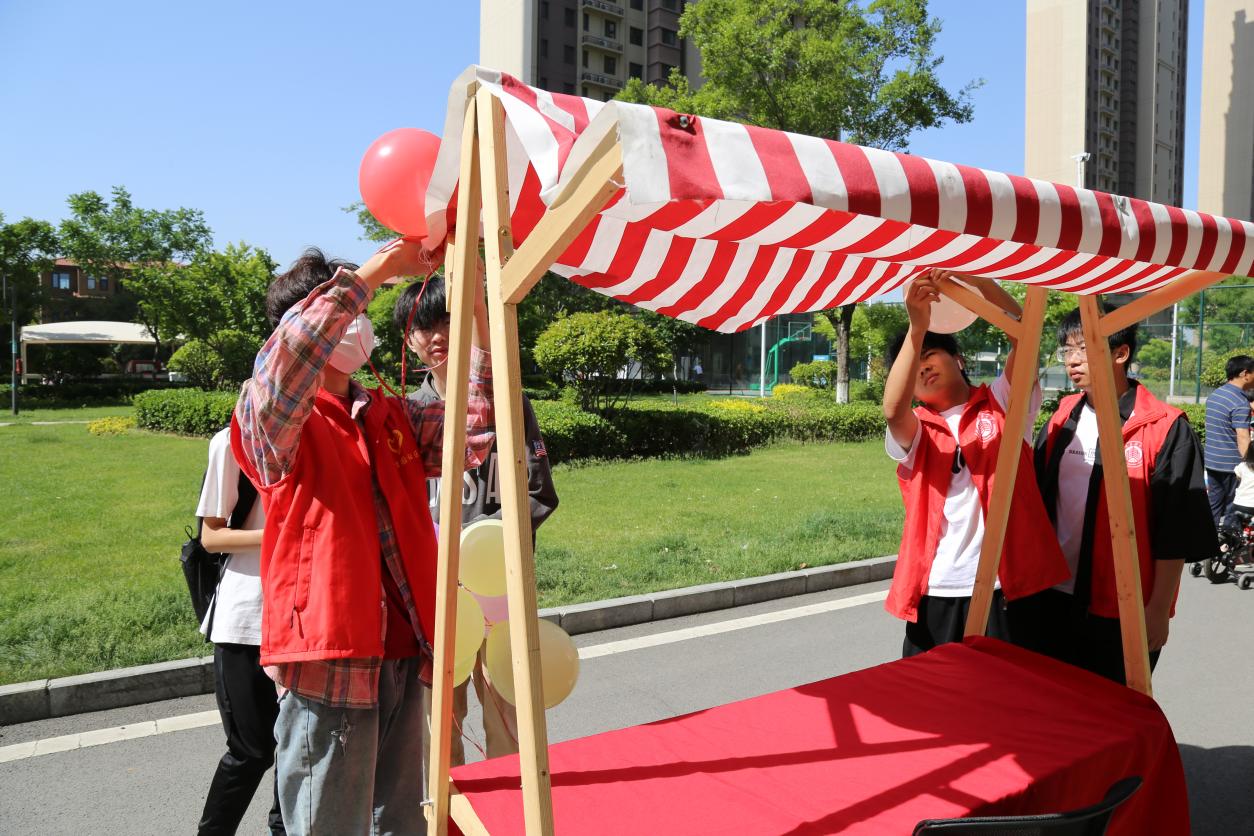 早上八点半,志愿者来到圣井碧桂园社区东区。在社区工作人员的指导之下,我院志愿者完成了十余个摊位的布置工作。志愿者们身着红色马甲,认真做好每一个细节,全力以赴地确保志愿活动顺利开展。