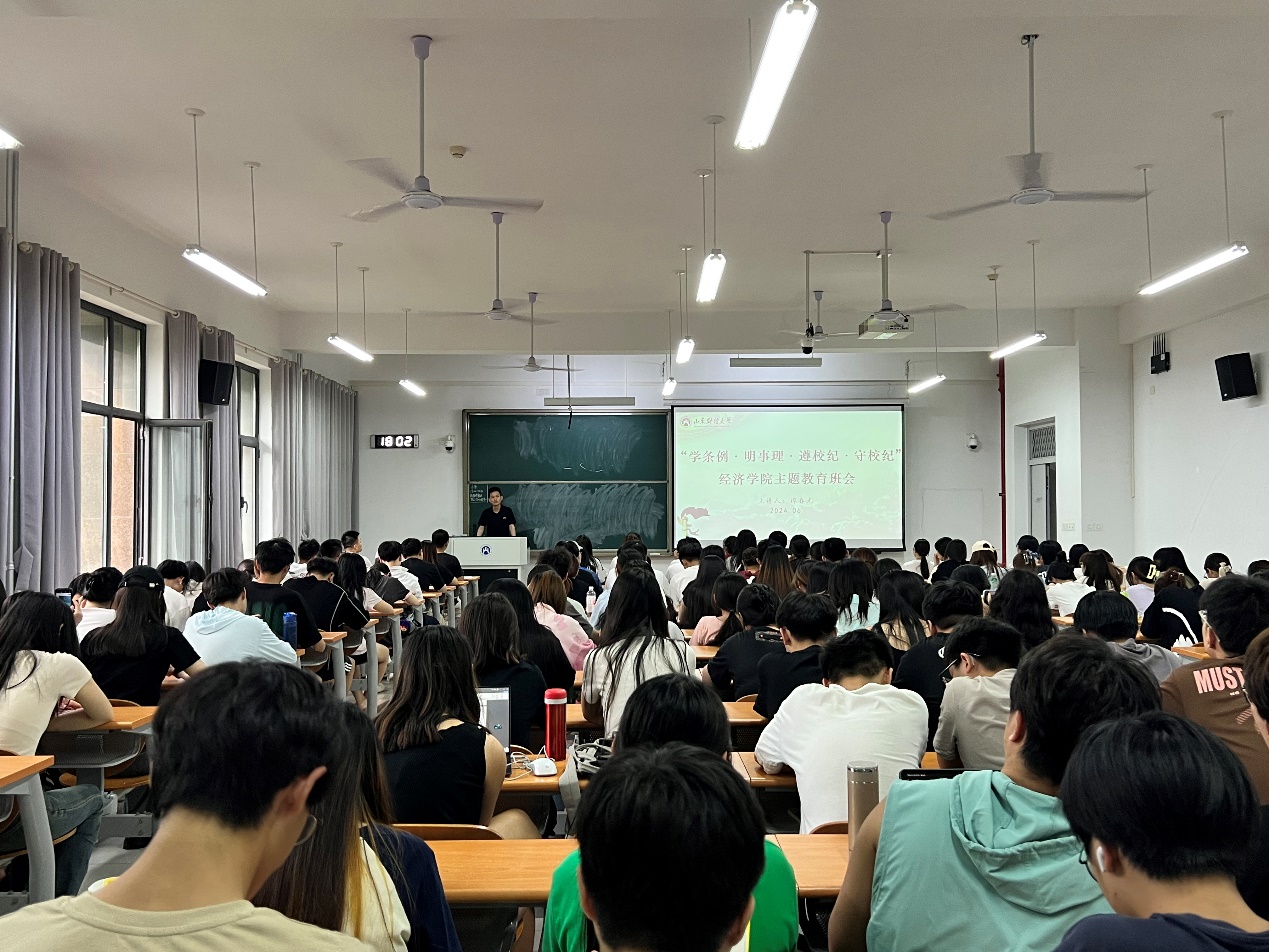 (通讯员:何瑞佳)为深入贯彻落实学校第二次党代会精神,规范同学们的言行举止,增强纪律观念,严明校规校纪,帮助同学们养成良好的学习和行为习惯,形成良好的校风、学风、班风,6月5日至6月12日,经济学院各班级召开“学条例·明事理·遵校纪·守校纪”主题教育班会,辅导员及全体学生参加了主题班会。