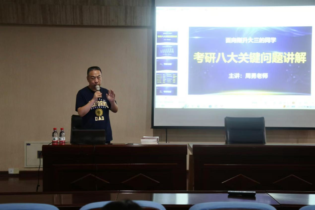 接下来,周勇围绕考研专业选择、院校选取、学习规划等方面展开分析,他指出,选择学校与专业要综合性的进行考量,从院校所在地、自我基础情况、个人梦想等方面具体分析,找准自我定位,选取合适的专业目标,培养自己的综合能力。