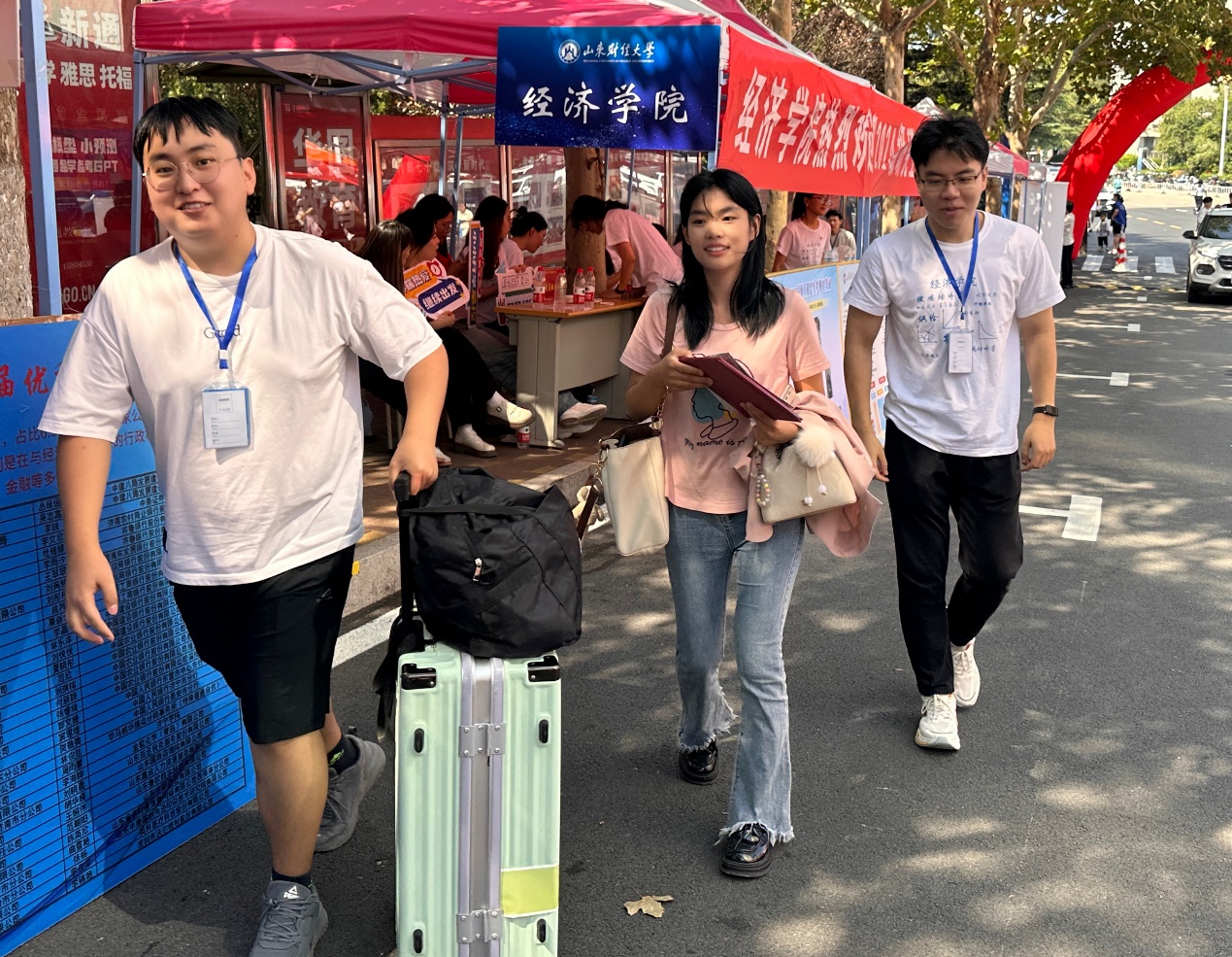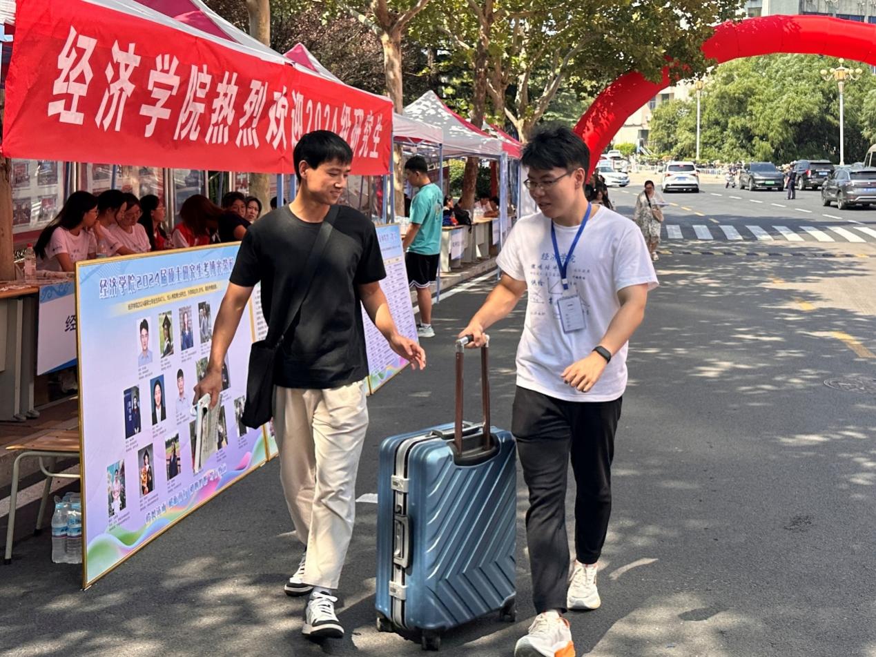 经济学院研究生志愿者们以“心”迎“新”,用行动传递着无私的爱与关怀,用热情点燃璀璨“新”光。从路线引领到问题解答,从行李搬运到失物招领,始终伴随新生左右,用热忱和细致擦亮经济学院靓丽的名片。