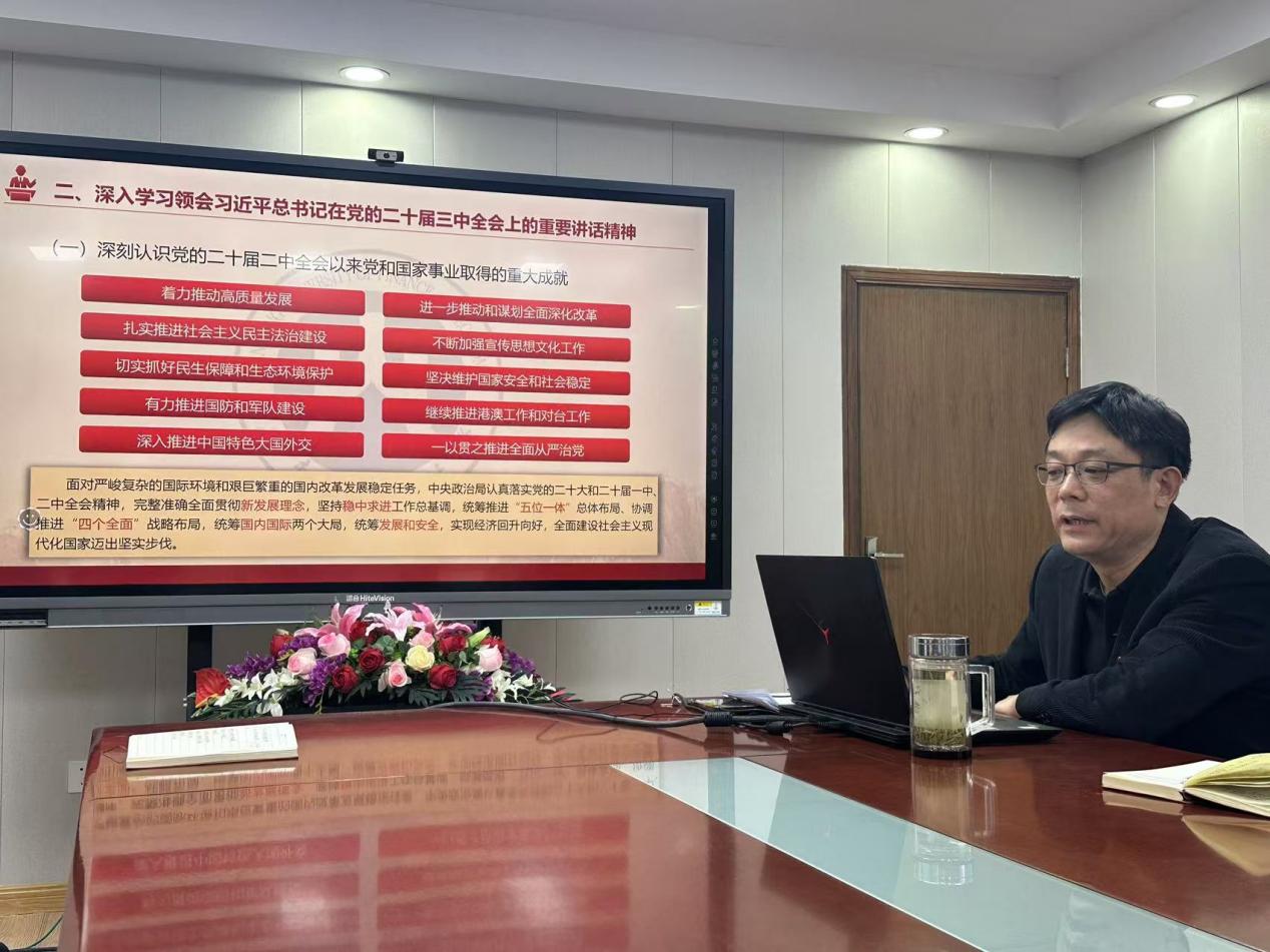 姜伟围绕全会召开的基本情况、习近平总书记的重要讲话精神、全面准确理解《决定》提出的进一步全面深化改革重大举措、全力以赴抓好全会精神贯彻落实四个方面,向与会党员进行通俗易懂、深入浅出的宣讲解读,深刻阐明进一步全面深化改革、推进中国式现代化的时代背景、使命任务、改革目标,深入阐释进一步全面深化改革的总体思路、基本原则、改革举措。姜伟特别强调经济体制改革的重要性,详细阐述了构建高水平社会主义市场经济体制、健全推动经济高质量发展体制机制、构建支持全面创新体制机制、健全宏观经济治理体系、完善城乡融合发展体制机制以及完善高水平对外开放体制机制等方面的具体内容和要求。