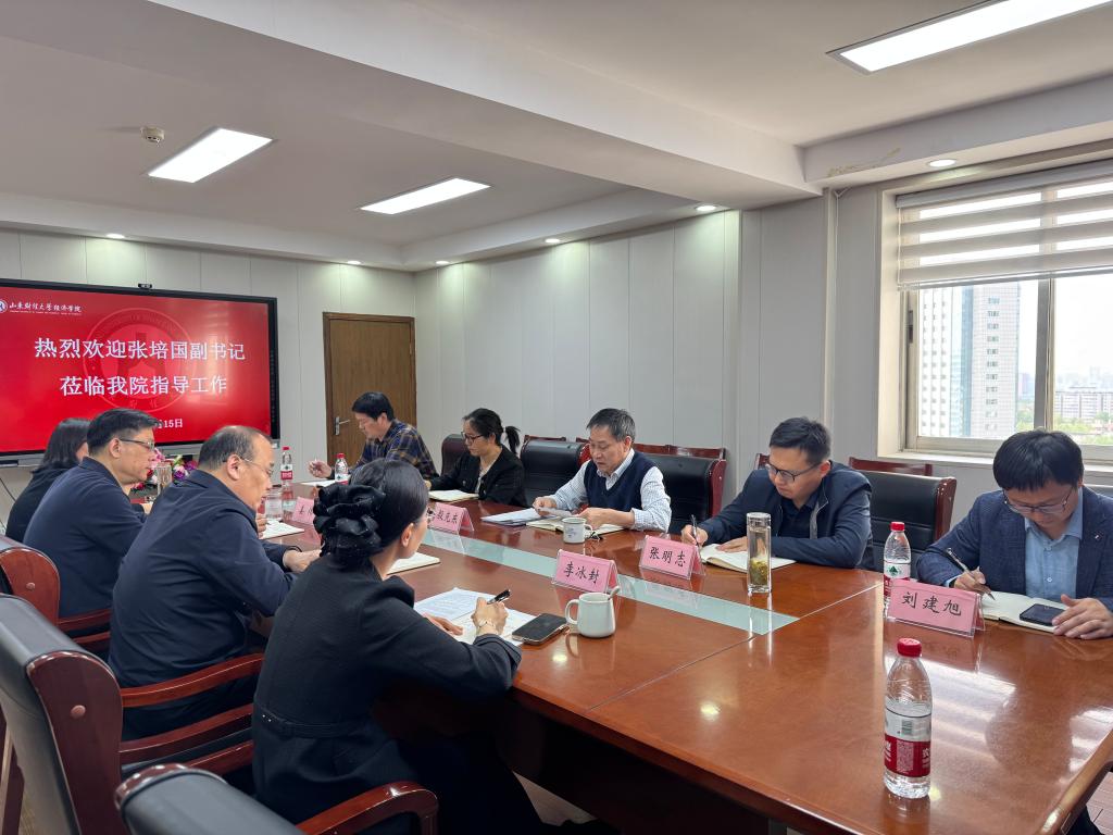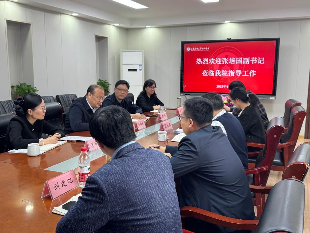 4月15日下午,校党委副书记张培国到经济学院调研指导,座谈会在舜耕校区办公楼会议室举行。经济学院党委书记姜伟主持座谈。