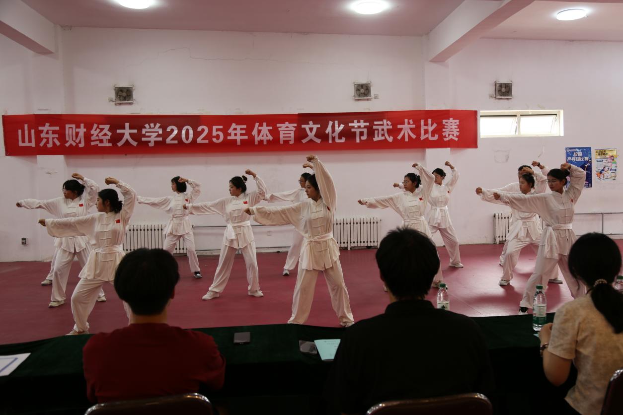 为传承武术文化,强健学生体魄,5月22日,由山东财经大学体育学院、学生工作部(处)、校团委、教务处联合主办的山东财经大学2025年体育文化节武术比赛在山东财经大学章丘校区乒乓球室举办。本次比赛吸引了来自各学院的数百名武术爱好者参与,现场气氛热烈,精彩纷呈。
