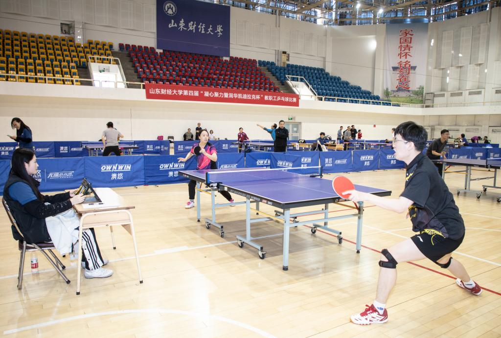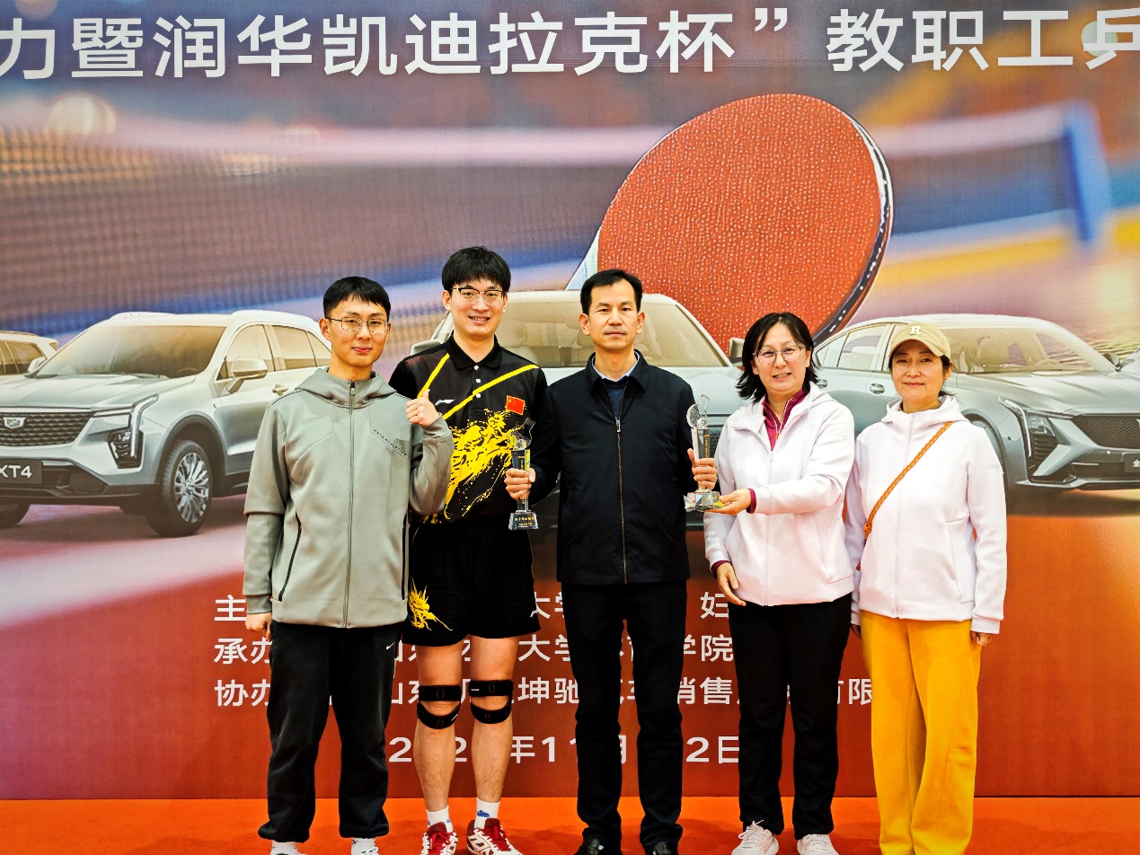 2025年11月2日下午,山东财经大学第四届“凝心聚力暨润华凯迪拉克杯”教职工乒乓球比赛在山东财经大学舜耕校区体育馆顺利闭幕。经过两天激烈角逐,我院代表队夺得团体亚军,青年教师马千里夺得男子单打冠军。