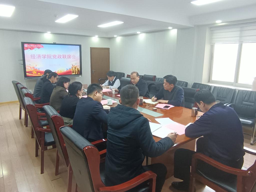 12月11日上午,经济学院在舜耕校区1208会议室召开党委会和党政联席会会议,校党委副书记张培国列席会议并进行指导。会议由学院党委书记姜伟、院长殷克东主持,全体班子成员参加会议。