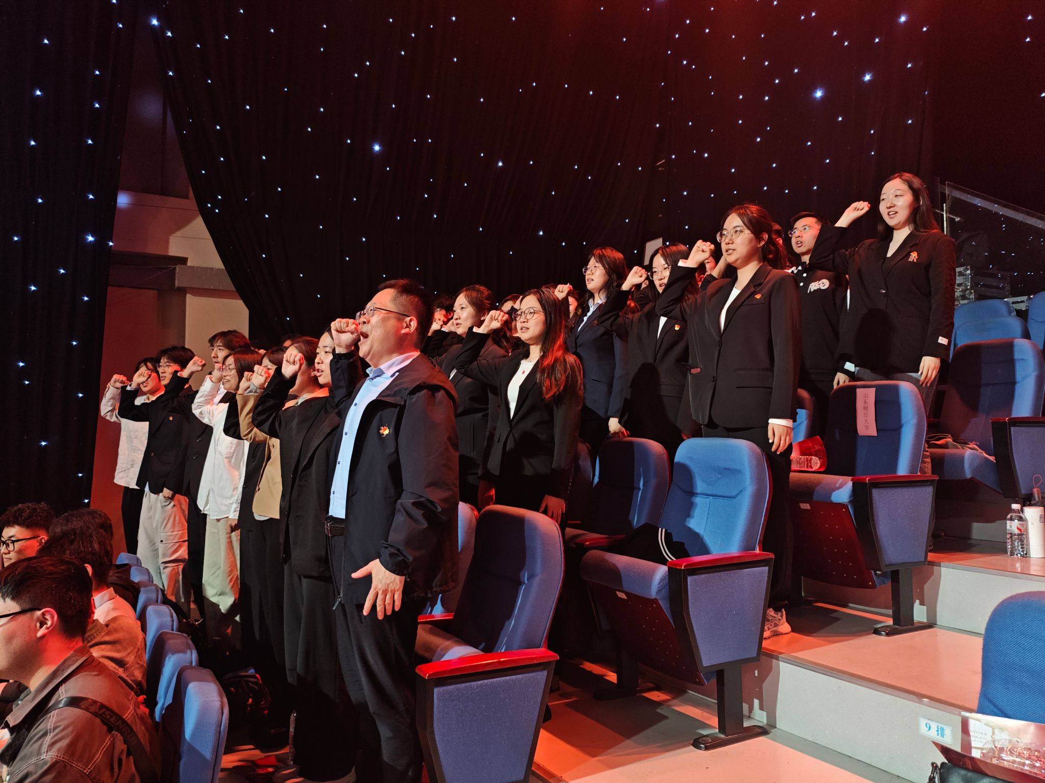 演出尾声,全体师生党员起立,在庄严肃穆的氛围中面向党旗重温入党誓词。铿锵恢弘的誓言在现场回荡,不仅让师生党员接受了深刻的党性教育和精神洗礼,更强化了党员的身份意识、宗旨意识和责任意识,进一步坚定了为共产主义事业奋斗终身的理想信念。
