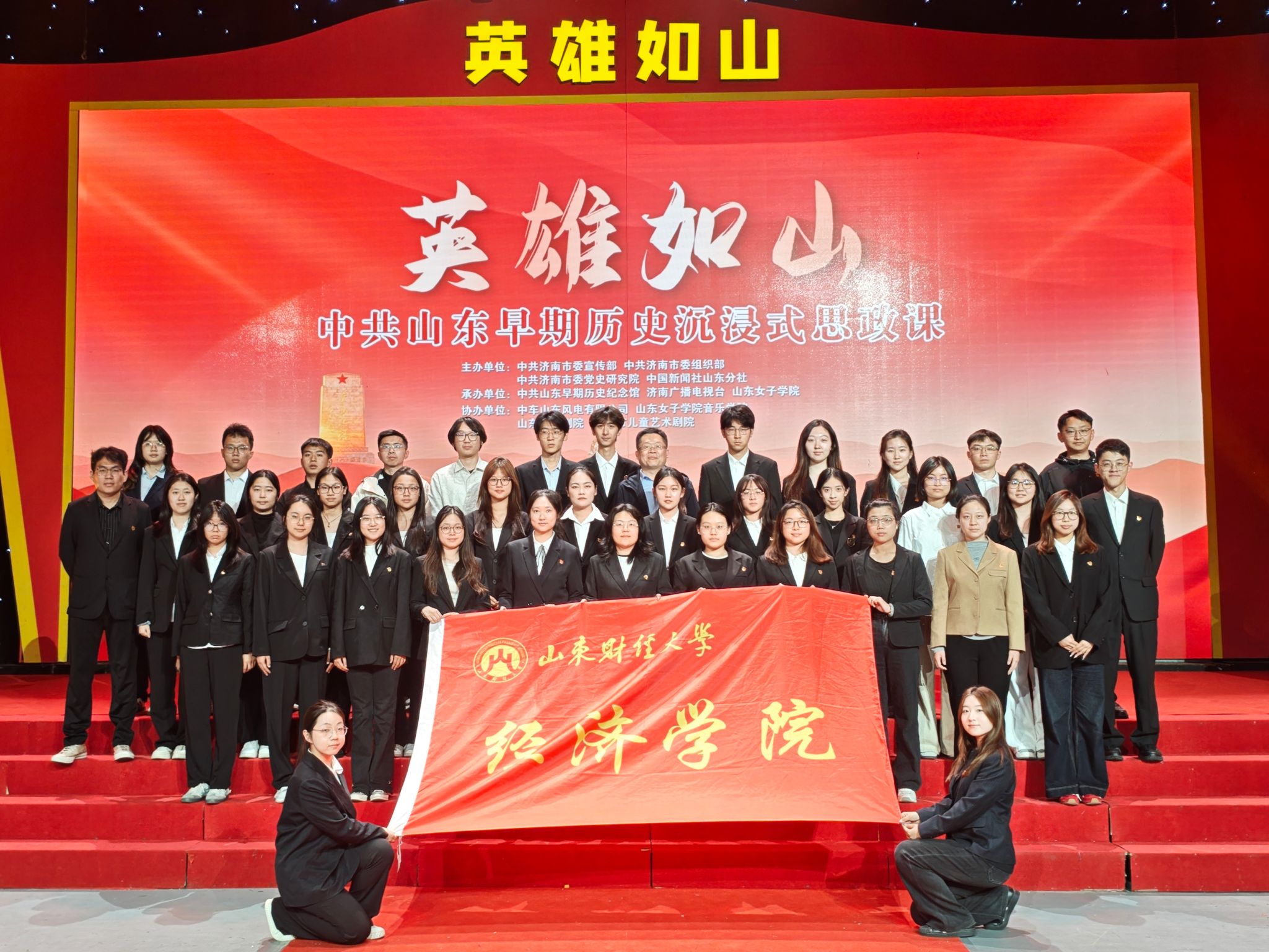 为庆祝中国共产党成立105周年,大力弘扬伟大建党精神,4月16日晚,经济学院组织师生党员赴济南广播电视台演播大厅参加“英雄如山”中共山东早期历史沉浸式思政课活动。