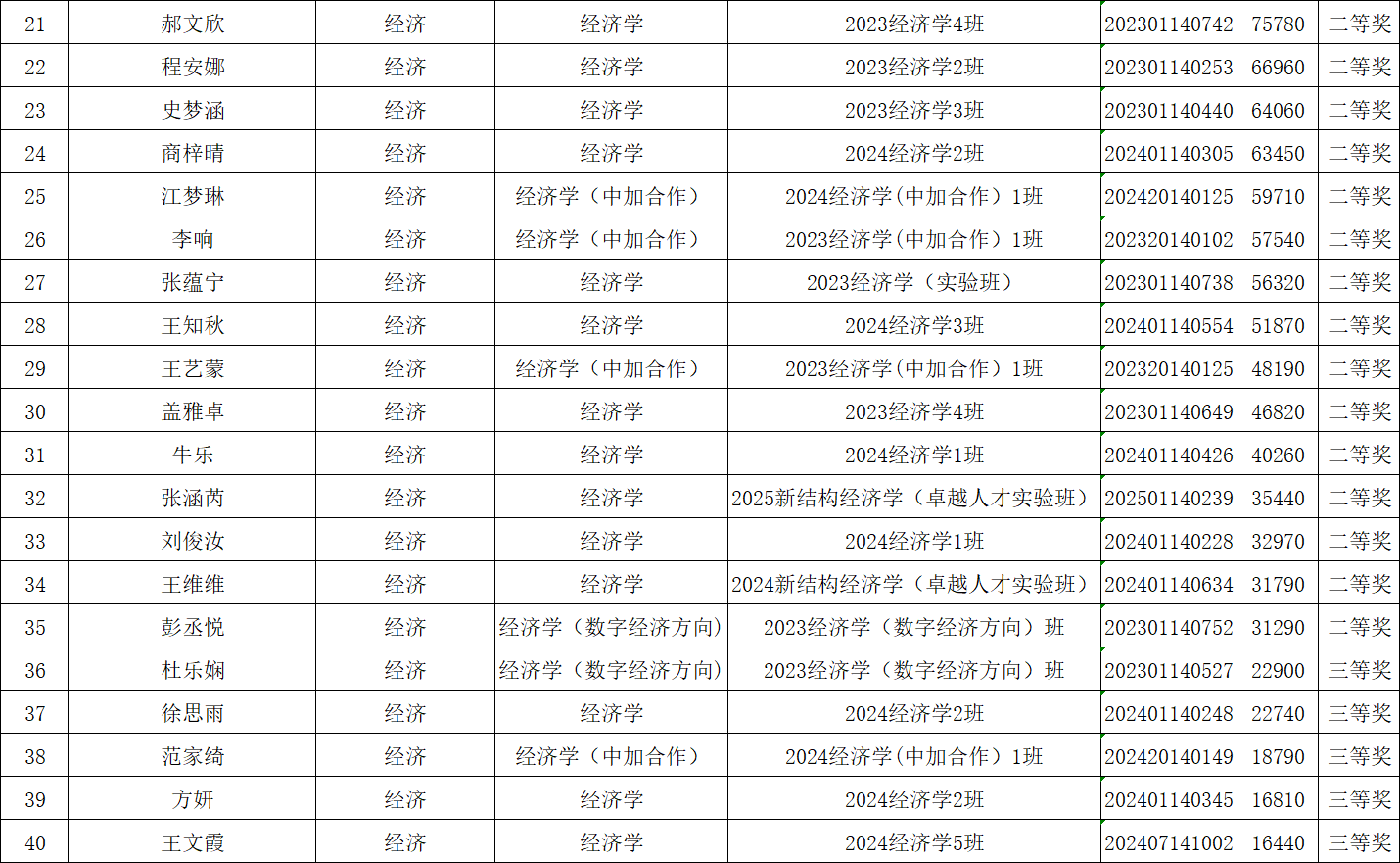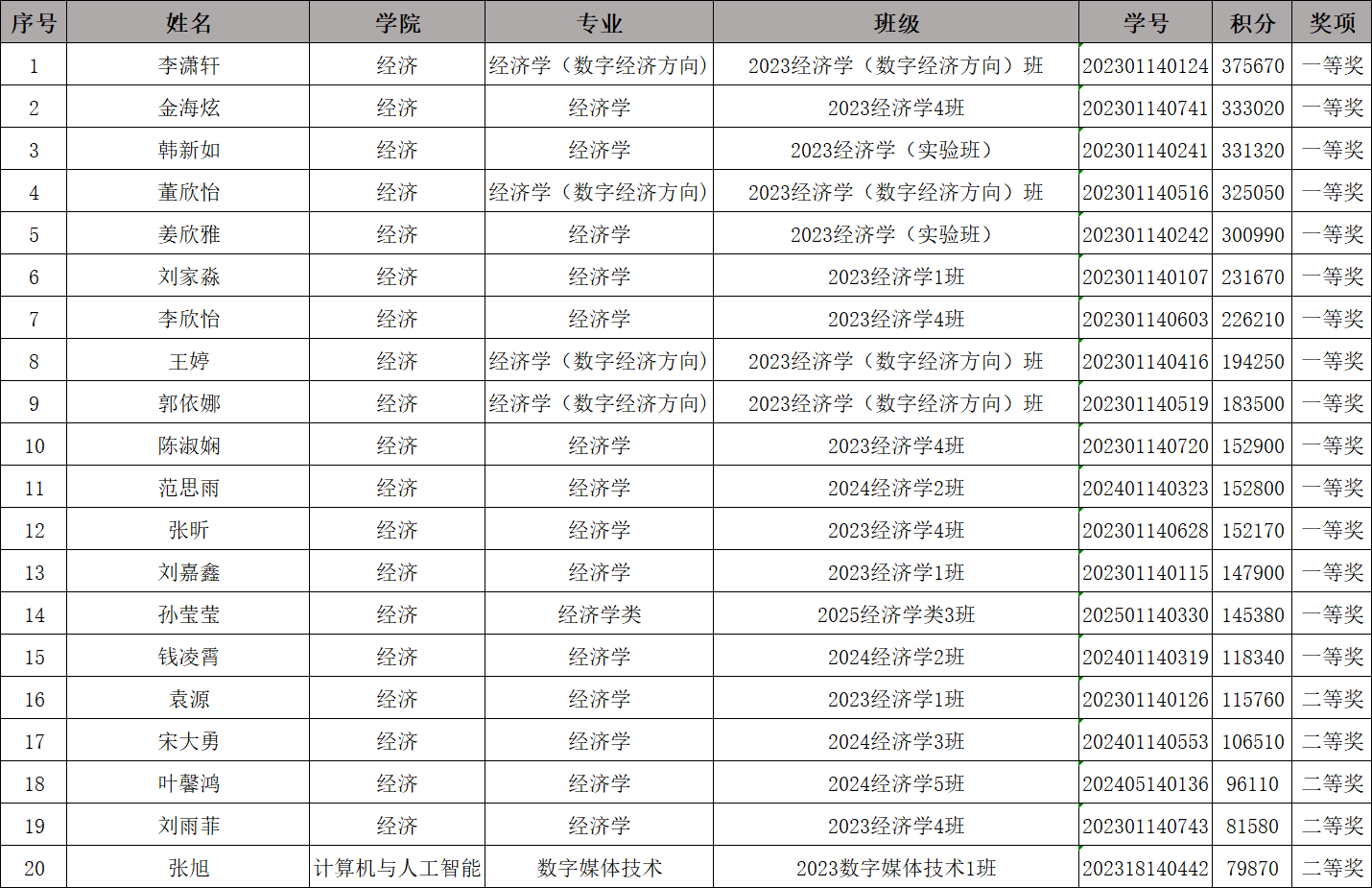 此次竞赛依托德邦资管自建线上投教基地进行,比赛持续近一个月,参赛选手通过微信小程序参与金融知识问答,涉及银行、证券发行与交易、保险、信托、投资等一系列金融知识,金融知识问答答题次数不限,每次满分100分,取历次答题分数加总进行排名评定和奖项设置。来自学校不同学院的百余名同学经过激烈比拼,最高分以375670分压倒性优势夺冠。最终,经济学院2023经济学(数字经济方向)班李潇轩、2023经济学4班金海炫等15名同学获得一等奖,经济学院2023经济学1班袁源2024经济学3班宋大勇等20名同学获得二等奖,经济学院2023经济学(数字经济方向)班杜乐娴、2024经济学2班徐思雨等25名同学获得三等奖。