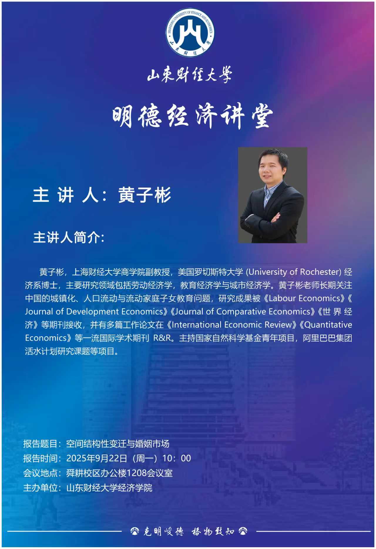 山东财经大学明德经济讲堂:空间结构性变迁与婚姻市场