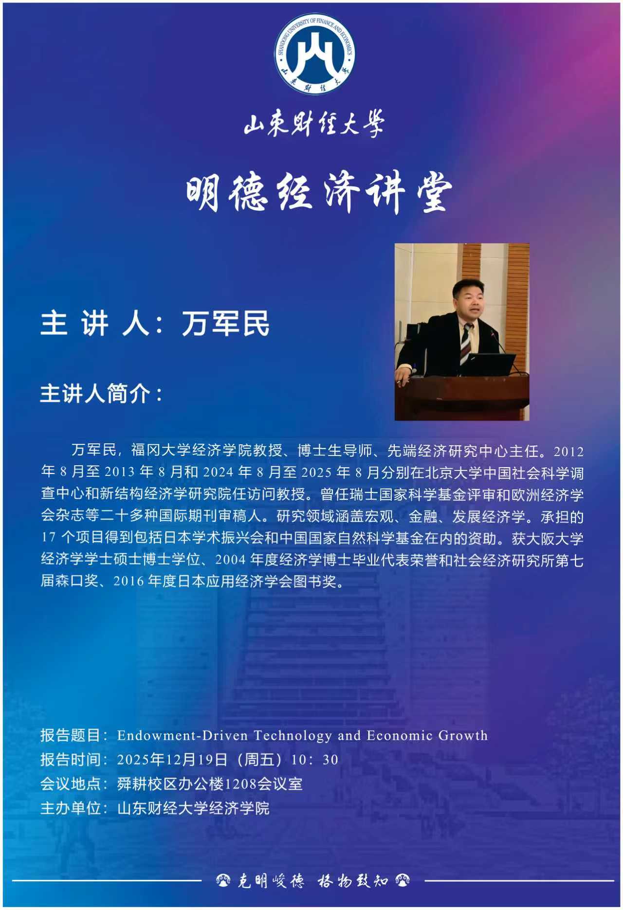 山东财经大学明德经济讲堂:Endowment-Driven Technology and Economic Growth