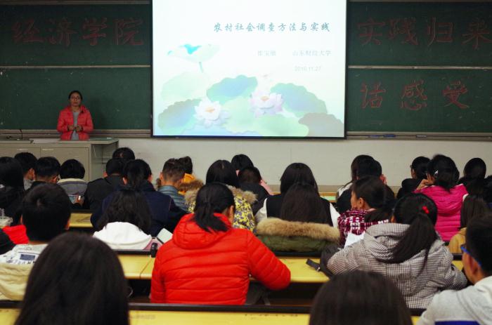 崔宝敏指出,经济学院在我校暑期社会实践“三千计划”的带动下,组织了多支社会实践调研队伍,秉承“在实践中成长,与社会同进步”的理念,全方位、深调研,在医疗、养老服务、消费、环境保护、渔业等方面展开实践活动,取得了丰富的收获与良好的效果。崔宝敏就基层社会调查方法、团队组建和团队管理、实践技巧等方面与同学们交流,指出:一、社会调查程序分为选题、准备、调查、分析、总结五个阶段,各阶段都需要科学调度,有效探究;二、社会实践选题立项要综合考察其可行性、操作性、具体性,同学们应时刻关注社会热点,学会运用专业知识拟写调查问卷,建立模型严谨分析;三、要讲求团队精神,明确分工,各尽其力,及时反思调研问题并记录心得体会。崔宝敏希望同学们采取“大视野,小切口,真问题,深调研”模式,通过深入研究和思考,把握时代脉搏,提出解决思路,在社会实践中丰富和完善自我。