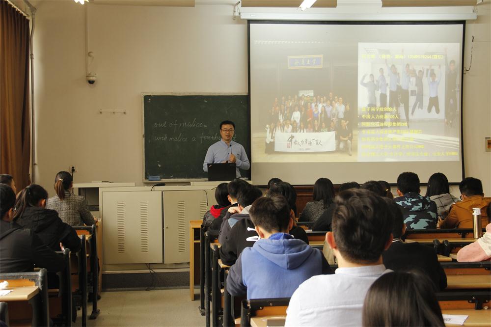 (通讯员:杨晶、郭雯瑶)11月17日下午2:00,经济学院于舜耕校区2404教室举办“与智慧同行,做最好的自己——遇见未知的微职场”就业指导讲座。讲座由饺子商学院创始人何志辉主讲,我院党委秘书兼就业办主任李冰封主持,我院14、15级部分同学到场参加。