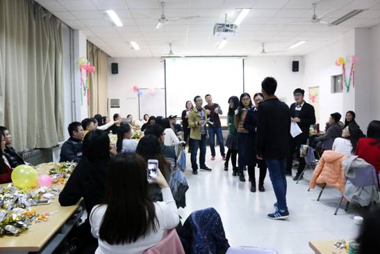 晚上7点,同学们按分组入座后活动准时开始。活动项目主要有歌曲争霸、心心相印、小咖秀、伪装者、谈天说地,每个项目分别选择优秀队伍进行奖励。在歌曲争霸项目中小组间听曲辨名并进行抢答,欢快的音乐点燃了现场热情的氛围;心心相印项目在考验同学们的默契程度的同时,提升了大家的凝聚力;小咖秀项目是最受同学们欢迎的,由周晓辉同学饰演的紫薇用精湛的演技和敬业的精神将欢乐的气氛推向高潮;伪装者项目在提升同学们演技的同时,也让研一和研二的同学增进了交流;谈天说地项目则直接加强了两年级同学间的沟通,大家就学习、生活、就业各方面进行交流讨论。整个活动充满了欢声笑语,获得了大家的一致赞扬。