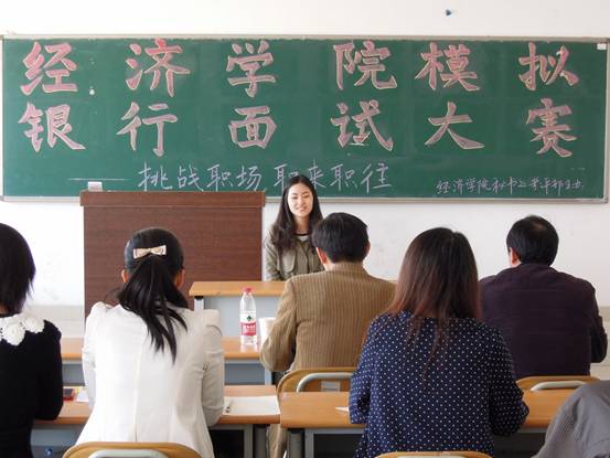 4月13日早上8:30,由经济学院学生会举办的“挑战职场,职来职往——模拟银行面试大赛”活动在圣井校区敏行楼B5401教室顺利进行。中国建设银行山东省分行营业部人力资源部副总经理孙中会、经理庞梦雨担任此次大赛的评委。我院圣井校区11级、12级同学参加此次活动。
