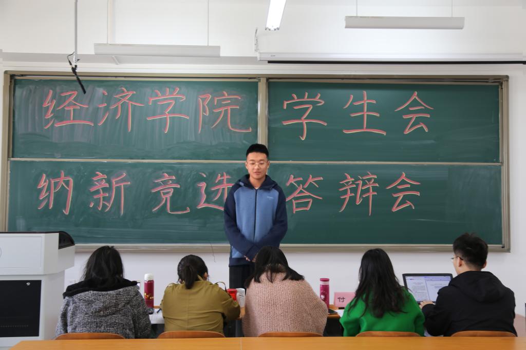 (通讯员:徐清娟王淑莹)10月31日中午12:30,经济学院于圣井校区七号教学楼举行学生会纳新竞选答辩会。经济学院党委专职组织员李冰封,团委书记付雯,院就业办主任裴斐,辅导员王琦、朱海林,第八届学生会主席团成员出席答辩会并担任评委,2019级新生共143位候选人参加答辩。