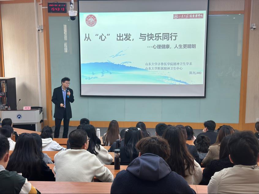 为进一步宣传和普及心理健康知识,传播心理健康理念,营造有利于学生身心健康发展和心理育人的环境和氛围,经济学院于3月12日在舜耕校区第三阶梯教室举办“从‘心’出发,与快乐同行——心理健康,人生更晴朗”心理健康教育讲座。讲座特邀山东大学附属精神卫生中心精神重症科主任、主任医师,山东大学齐鲁医学院精神卫生学系副主任、副教授兼精神病与精神卫生学专业硕导陈旭主讲。经济学院团委书记付雯主持,学院全体硕博研究生参加。